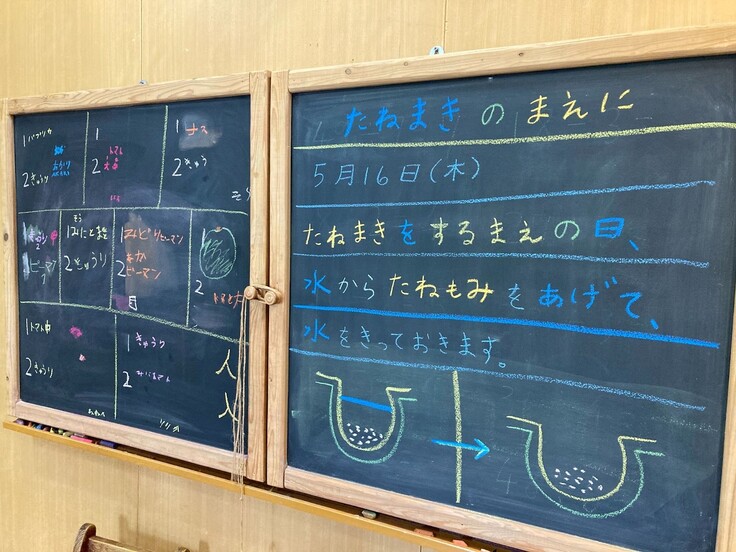 「今日、学校でお米の種を塩水につけたんだよ! いい種とそうじゃない種を分けて、お米の苗を作るんだって!」