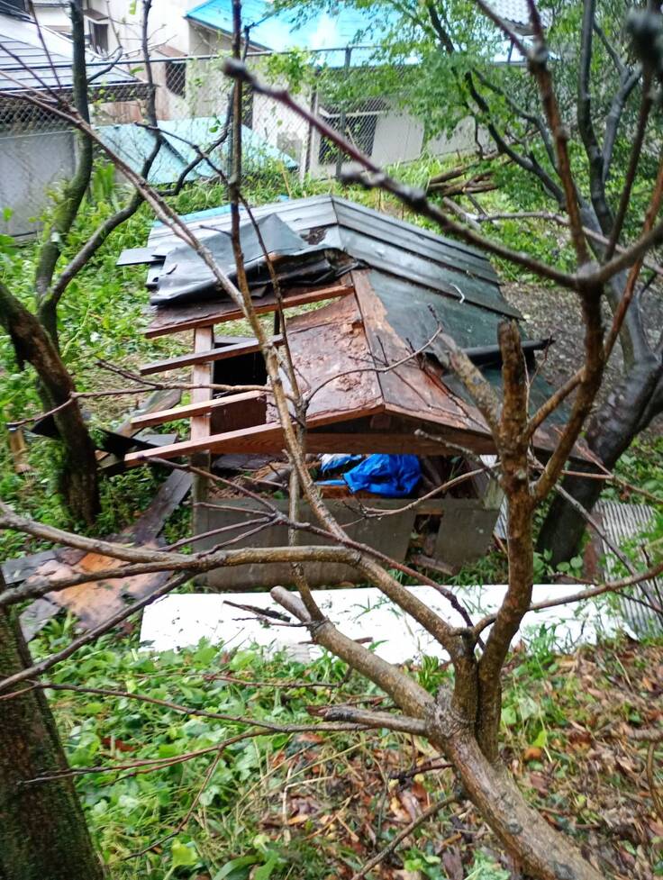 子どもたちや大工さんと「家づくり」の学びで立てた小屋も、昨年台風の被害に遭いました。