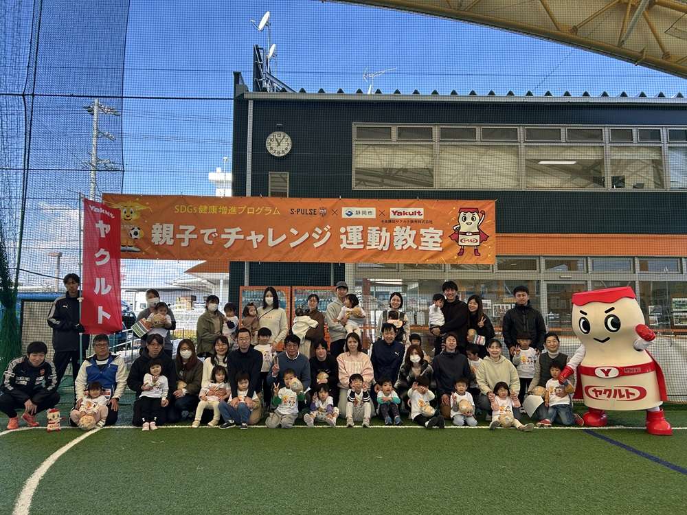 3月12日(木)エスパルスドリームフィールド静岡にて、2025年度第10回SDGs健康増進プログラム ヤクルト PRESENTS 「親子でチャレンジ運動教室」Supported by 静岡市を開催しました。本日は、19組の親子の皆様にご参加いただきました。