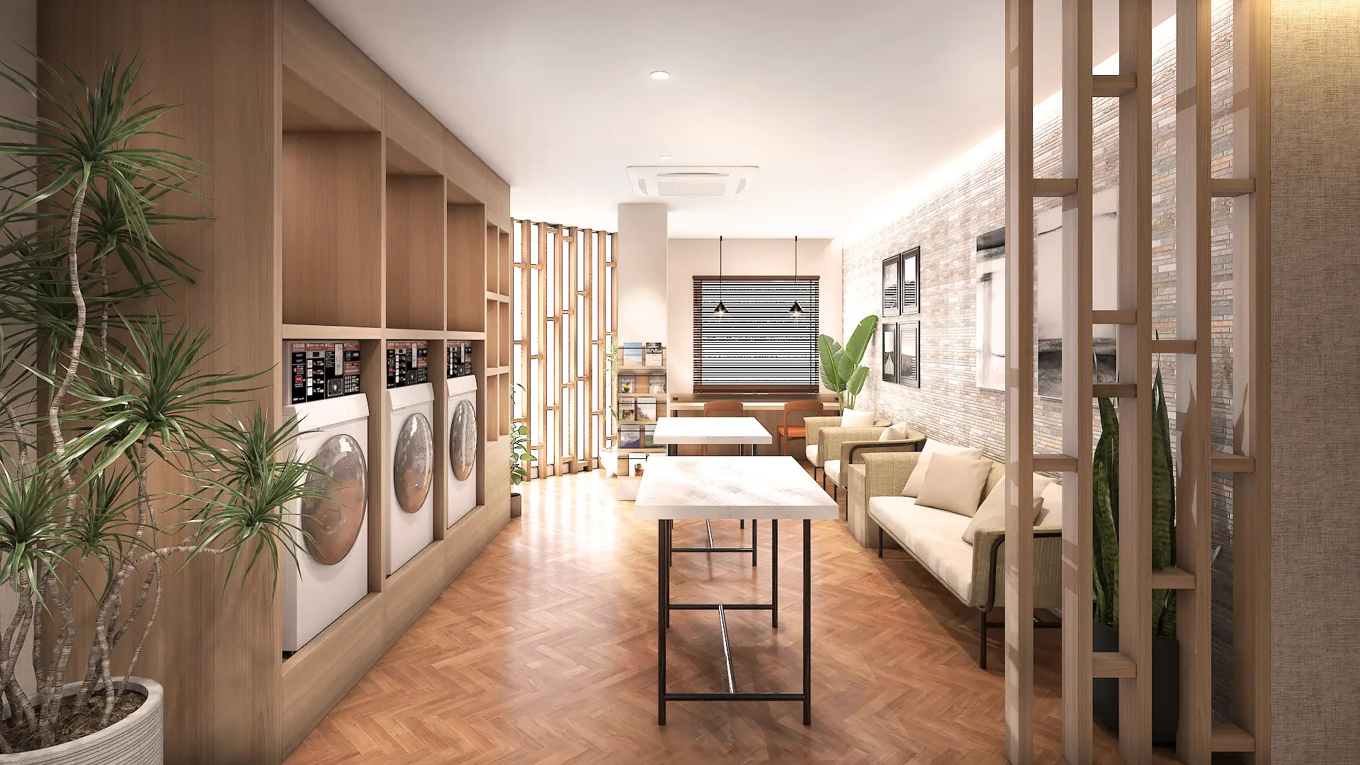 神戸空港国際化や大阪IRなど長期滞在客(ロングステイ)やファミリー客の増加を見据えたランドリーラウンジ。