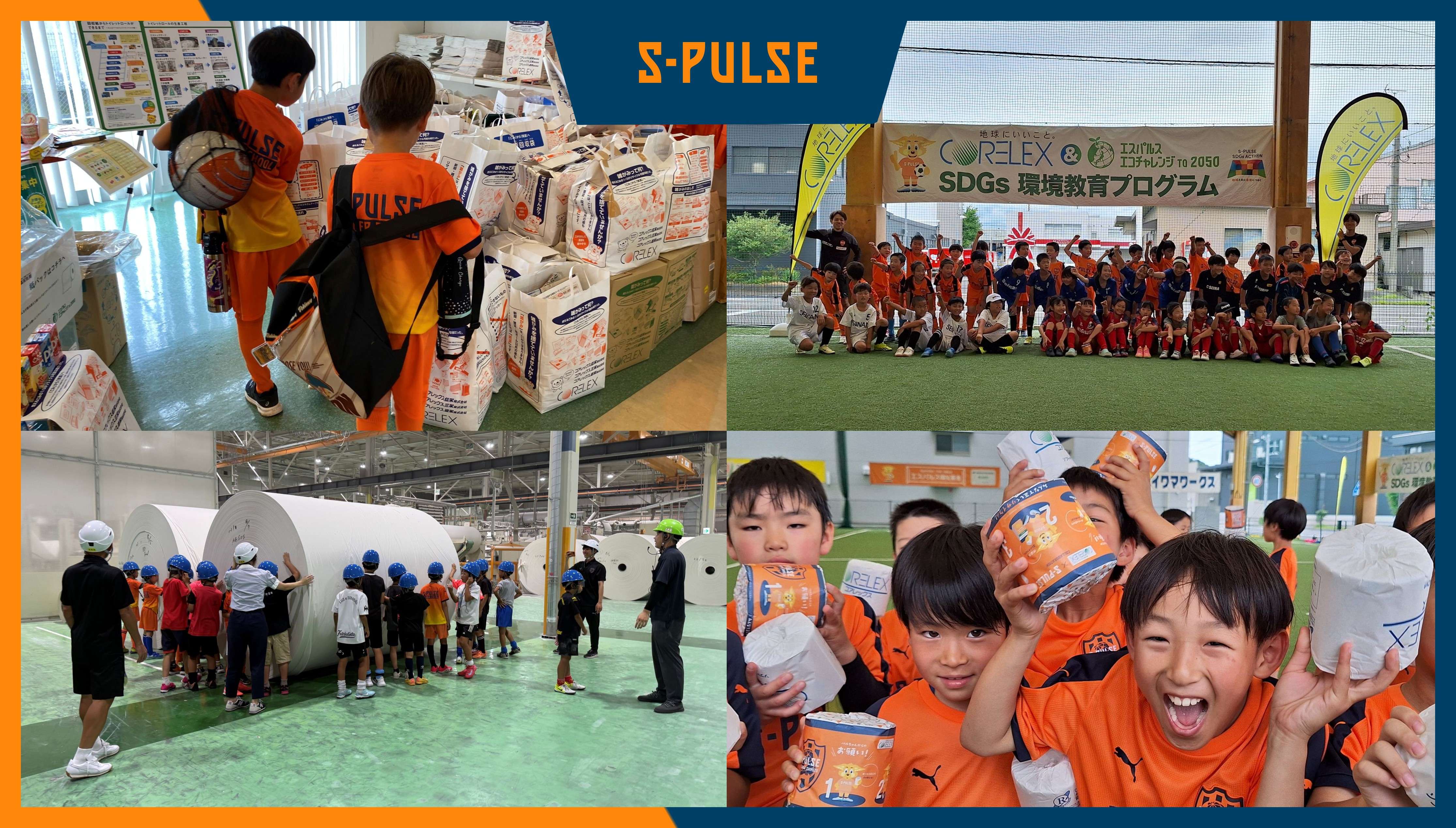 【短期集中プログラム】地域交流サッカー大会、およびコアレックス工場見学の実施。2025シーズンは約35.5トンの雑紙を回収し、約27.7トンのCO2排出量を削減した。(コアレックス信栄提供値により算出、紙パックを基に試算)