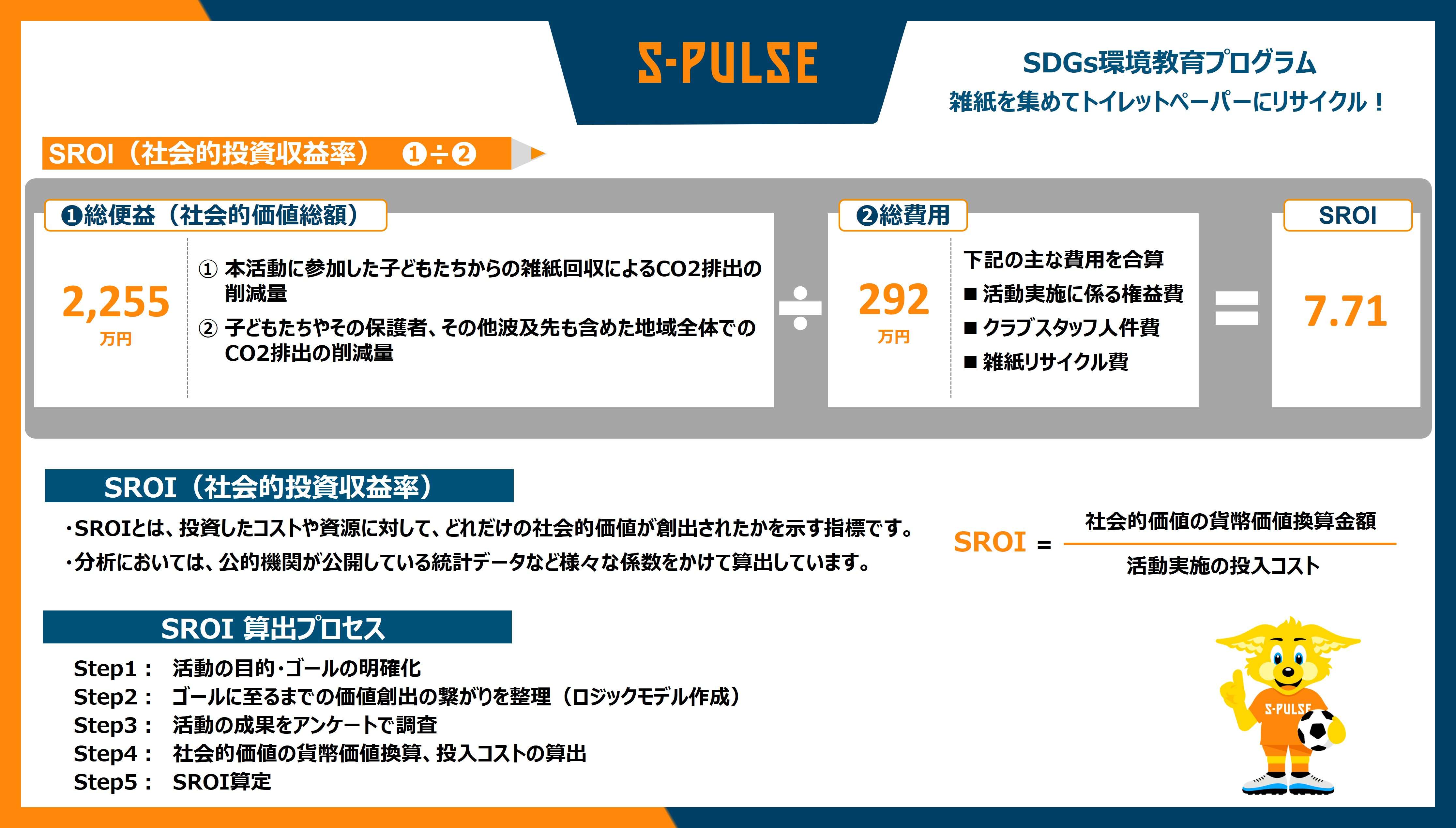 エスパルスはこのたび、新たにサステナビリティ活動に特化した年次報告書として『清水エスパルス インパクトレポート2025』を発行いたしました。レポート内にて、「気候変動」における代表的な活動『SDGs環境教育プログラム 雑紙を集めてトイレットペーパーにリサイクル!』について、創出される社会的価値の算定・評価を行うため、KPMGコンサルティング株式会社の支援のもと、SROI(社会的投資収益率)評価を実施しましたのでお知らせします。