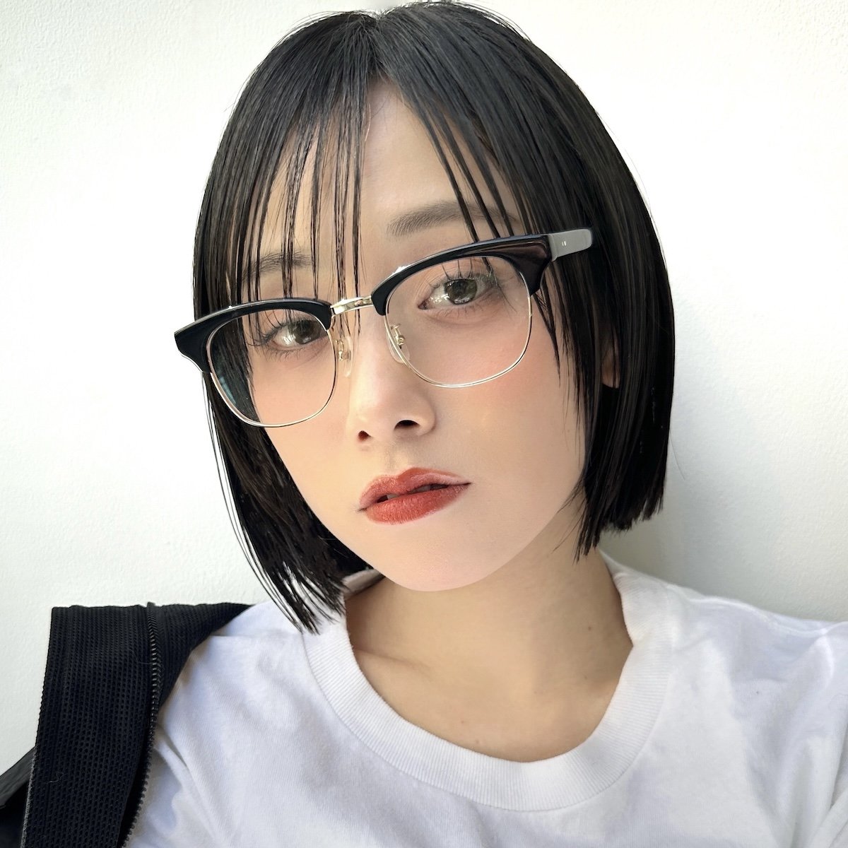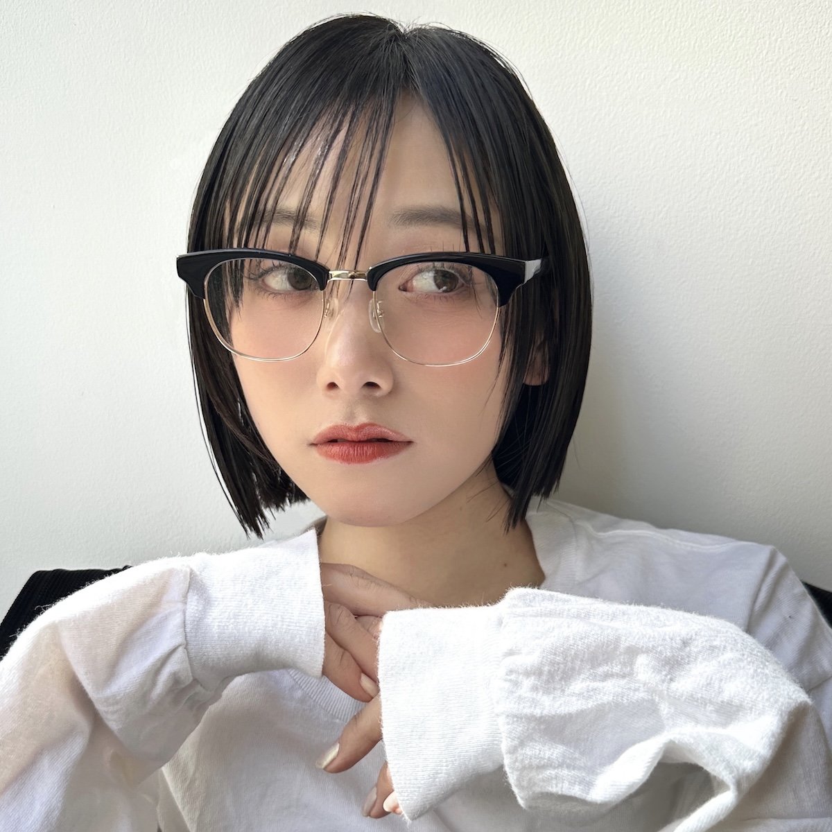 丸みのあるボブに、場所によって長さの異なるレイヤーを入れたこちら。骨格に合わせた繊細なレイヤーを入れているため、輪郭カバーができ小顔効果も望めます。前髪はシースルーで透け感を出し、巻いて眉ギリギリの長さにすればメガネとの相性もグッド。