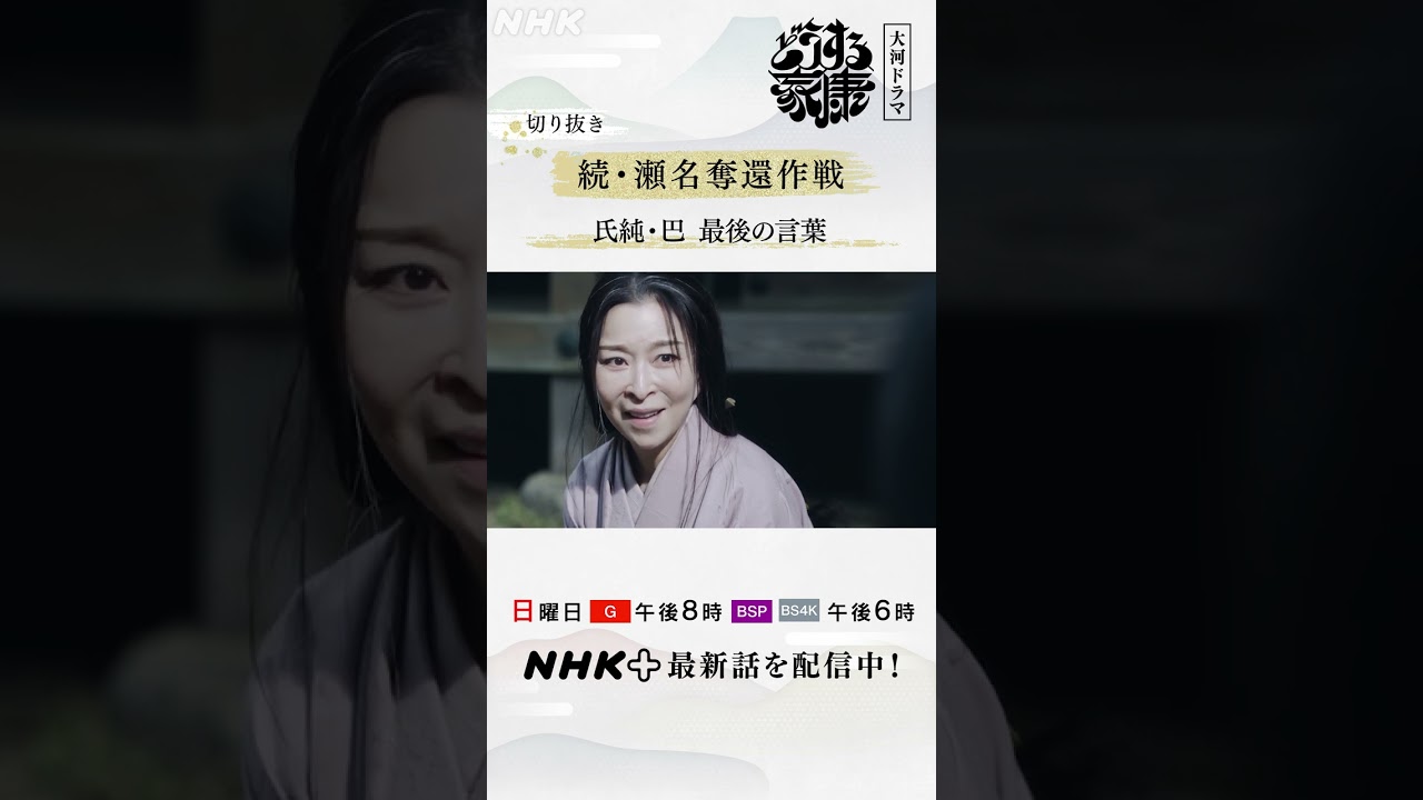 (第6回)元康(家康)から人質交換で瀬名や家族を引き渡すよう要求された今川氏真(溝端淳平)は、瀬名(有村架純)の両親・関口氏純(渡部篤郎)と巴(真矢ミキ)は引き渡さないことを条件に、人質交換に応じる。両親の犠牲を受入れられない瀬名に、氏純と巴は語りかける。
