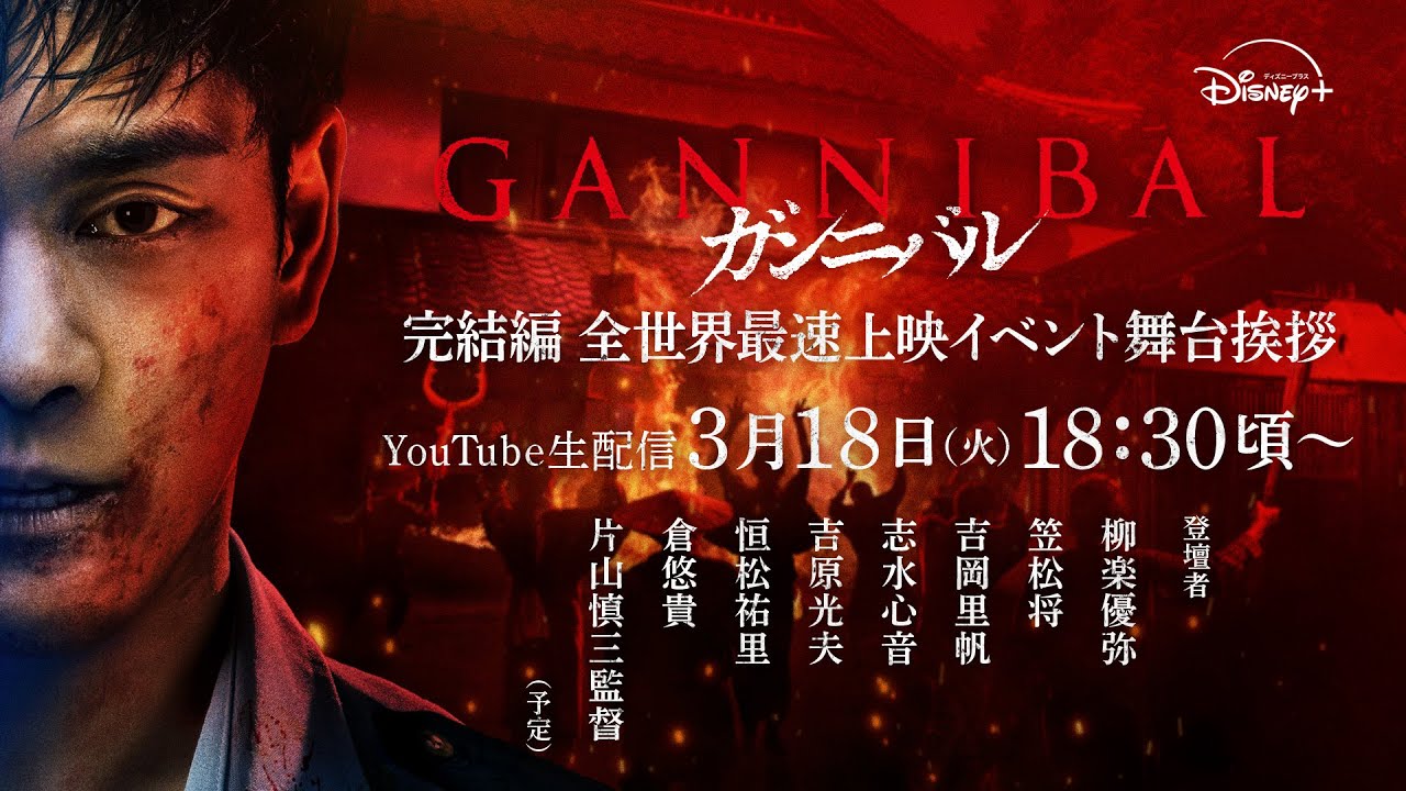 いよいよ3月19日(水)ディズニープラス スターで独占配信開始!ディズニープラスが放つ、世界を震撼させた衝撃のヴィレッジ・サイコスリラー超大作、完結。待望のシーズン2配信目前、「『ガンニバル』完結編 全世界最速上映イベント」を開催し、豪華キャスト、監督をゲストに迎えた舞台挨拶の模様を生配信します!