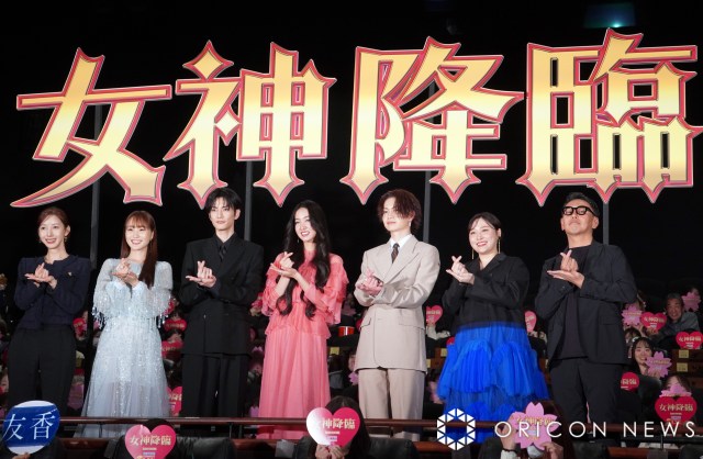 映画『女神降臨 Before 高校デビュー編』初日舞台あいさつに登壇した(左から)yaongyi氏、菅井友香、渡邊圭祐、Koki,、綱啓永、丸山礼、星野和成監督(C)ORICON NewS inc.