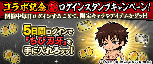 5日間ログインでコラボ限定EXキャラクター「ちび刃牙」をゲット。