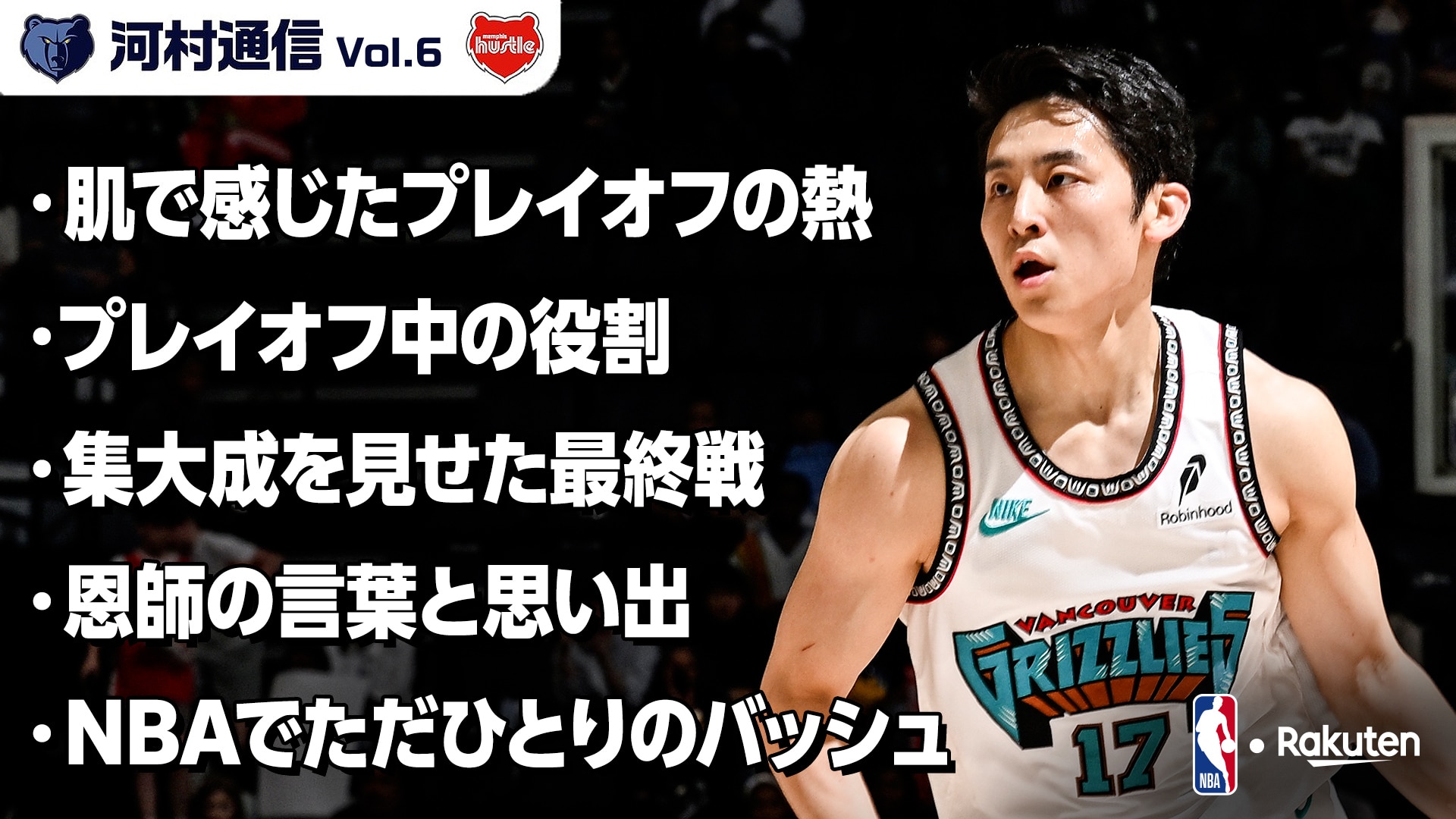 NBA Rakutenアンバサダーの河村勇輝選手(メンフィス・グリズリーズ)をフィーチャーした特別企画『I Wanna Be Local 河村通信 Vol.6』を5月2日(金)に配信開始しました。第6弾は河村選手が間近で体験したポストシーズンの戦いや、福岡第一高校時代の恩師である井手口孝監督との思い出などについて語ってくれています。