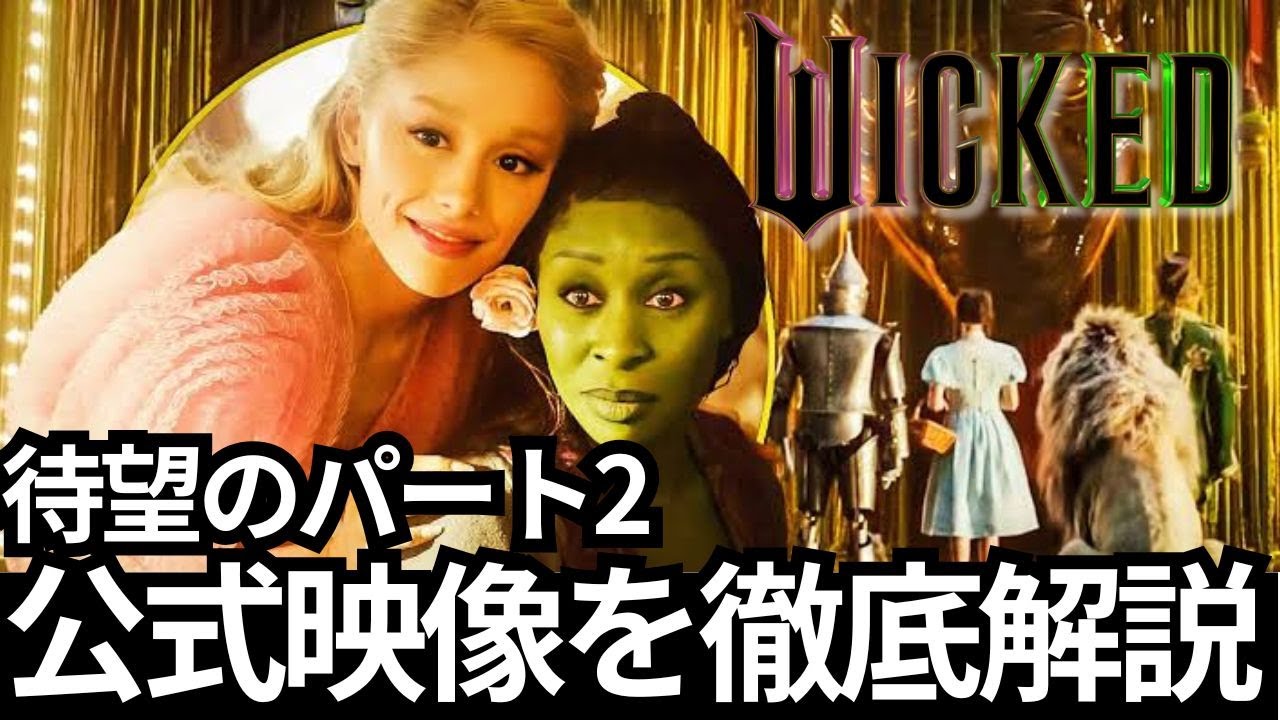 ウィキッドウォッドの最新トレーラーが 公開されました再び私たちはエメラルド シティつまりオズの国へと戻ってきます 出演者は紳士やエリボアリアナグランデ ジョナサンベイリーミシェルオそして もちろんジェフゴールドブラムという豪華 な顔ご覧の通りドロシーの存在感切なさ そして懐かしい仲間たちが一挙に押し寄せ てくるような内容になっていますではこの トレーラーをシーンごとに丁寧に見ていき ながら見逃しがちなポイントをチェックし ていきましょうまずお伝えしておきたいの は今回の動画では歌番ウィキットの大きな ネタバレは避けますブロードウェイなどで 見たことがある方も多いかと思いますが これからウィキッドの世界に初めて触れる 方もいますよねそういう方々のために驚き の展開は伏せておきます物語は壊れた橋と エメラルドシティのバルコニーに面した窓 から始まりますこの場面はエルファバが かつてグリーンダと一緒に暮らしていた 学生量の窓を割った場面やその後ガラスを 砕いて空へと舞い上がるディファイン グラビティの名シンを思い起こさせます カメラはグリンダにフォーカスし彼女が外 へとかけていく姿が映し出されますそこへ エルファバが現れますワニティフェアに よる先行公開映像では同じシーンに登場 する2人のより鮮明なカットも紹介されて いましたこの時グリンダが着ているドレス はトレーラー後半にも再び登場しますそう このドレスはグリンダのウェディング ドレスなのですつまり彼女は結婚するん ですね歌版ではグリンダの結婚式のシーン はなかったと言われていますが個人的には どこかで見たような記憶があるんですよね 気のせいかもしれませんがもし覚えている 方がいたら教えてください私の記憶が 間違っているかどうか教えてもらえると 嬉しいです確か熱の後のシーンのつぎとし て何かあったようなでも思い違いかもしれ ません続くシーンでは続編用に新しい楽曲 が用意されていることがわかります多くの 人が予想していた通りここでオリジナルの 新曲が登場する可能性が高く業界関係者に よるとそのタイトルにはバブル泡という 言葉が含まれているとのことバブルの中の 少女ガールインザバブルというタイトルは グリンダの結婚前の心情を象徴していると 考えられますこの曲では彼女がスターで あり偶像として持ち上げられ政治的な目的 に利用されてきたという葛藤が描かれるの ではないでしょうか彼女自身その使命を 本気で信じたことはないグリンダはずっと バブルの中の少女でしかなかったそして今 彼女は完全に孤独なのですバルコニーの 左側には彼女がノーワンモンズザ ウィケットグッドニュースの冒頭で登場し たシャボン玉の乗り物も確認できます ここで紳士や襟リボの歌声が低音のベースラインに乗って徐々に高まっていきますこの瞬間来るぞという続感が走ります この新曲は紳シアとア有リアナによるフグッドあなたを忘れないのようなデュエットになる可能性もありファンの期待が高まるところですさらにその後新シアによるノーグッドディード闇に生きるの一説が聞こえてきます まさに彼女の新骨調と言えるような力強さでこの楽曲もまた記憶に残るナンバーになることでしょう監督のジョン中は以前パート 2 ではエルファバの物語に深くフォーカスすると名言しており彼女がエメラルドシティを離れてからどのような選択をしてきたのかそしてその活動そらくジアの森にある強制移住地のような場所が描かれる予定です このシーンでエルファバが唱える呪文は グリムリーと呼ばれる魔導書から引用した 魔法第1作の終盤で彼女が魔法使いから 奪還したあの本ですやがて彼女は悪い魔女 に警戒せよと書かれたビラを突きさします このビラを描いたのはマンチキンランドの アーティストそして次の場面では エルファバが魔法を調合しているような 描写が映知らされますもちろんこれは有的 な表現ですがまさに彼女が呪文を構築して いる最中であることを象徴しています背景 に佇む魔導書の姿がとにかく相関で見る ものを圧倒しますエルファバにはこの魔導 書を読み解けるな能力があります文字が 金色の光となってページから浮かび上がり 彼女の周囲を舞うように散っていく ビジュアルは圧貫この資格効果を生み出し ているのはILMインダustライト& マジックのパブロヘルマンヒールチーム彼 らは舞台の夢のようなクリエイティビティ を映画的なアプローチで見事に具限化して いますちなみにこの魔導書の魔法文字は常 に完璧に読みやすいわけではありません むしろエルファバの呪文の未熟さや 経験不足が資格効果として絶妙に反映され ています動きのある定示黄金に発行する 呪文そしてまるで折り紙のように砕けて マウたち彼女がどれほど長い時間孤独の中 で魔法と向き合ってきたのかが画面から ひシひしと伝わってきますこの後のシーン では第1作の冒頭ナンバーと思われる カットがいくつか登場し