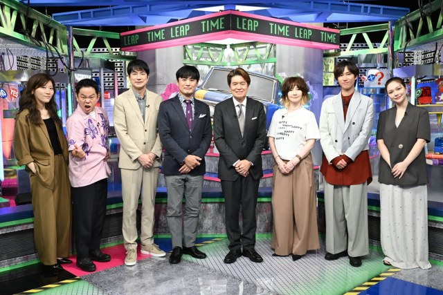 20日放送『クイズタイムリープ』に出演する(左から)ヒコロヒー、津田篤宏、羽鳥慎一、劇団ひとり、ヒロミ、YOU、阿部亮平、村重杏奈(C)日本テレビ