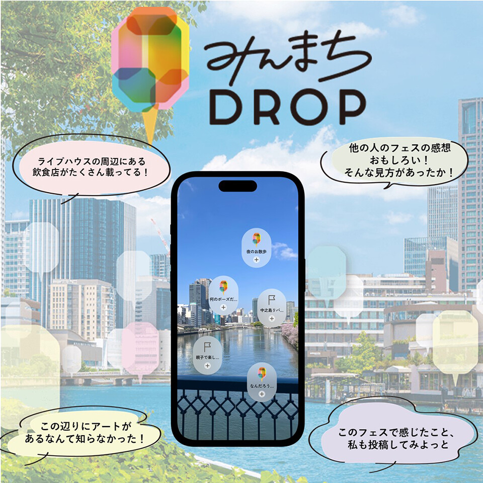 期間中、音楽を楽しみながらスマートフォンで参加する「みんまちDROPイベント版」によるスタンプラリーを実施