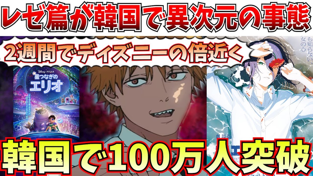 【衝撃】ブラピのF1も超える…チェンソーマン レゼ篇が韓国で観客100万人突破の快進撃を記録【劇場版「鬼滅の刃」無限城編 第一章 猗窩座再来/チェンソーマン レゼ篇】