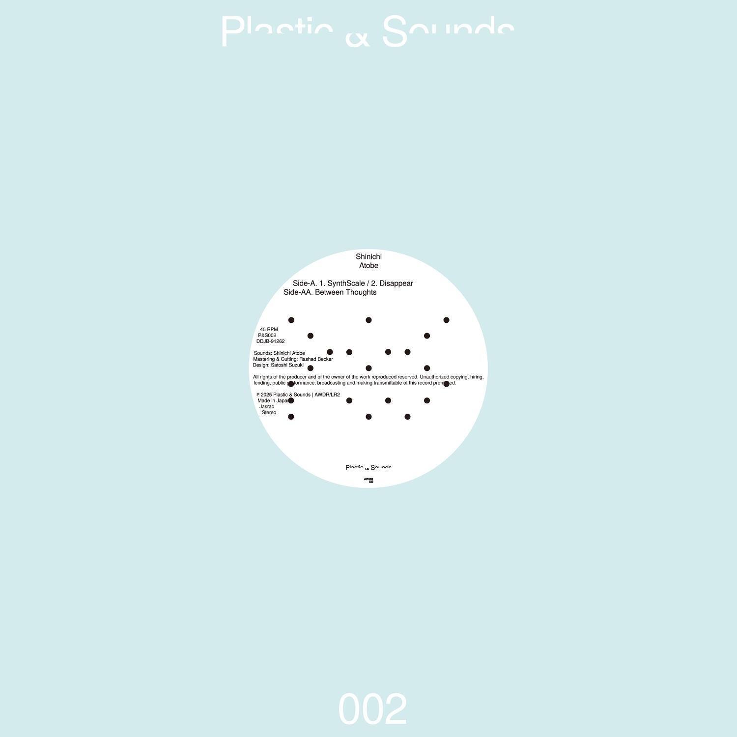 In July of this year, Atobe suddenly launched his own private label, Plastic & Sounds, and now announces its second release, “A1. SynthScale / A2. Disappear | AA. Between Thoughts”, available as a 12-inch (45RPM / limited press) vinyl and in digital formats.