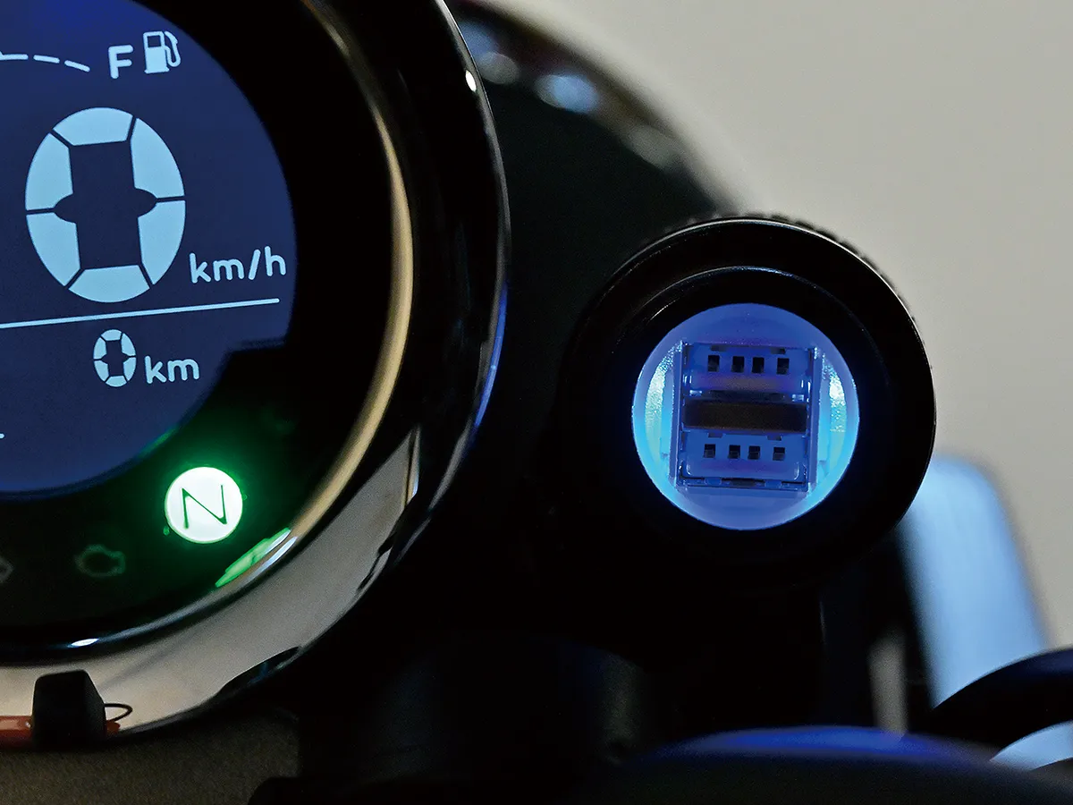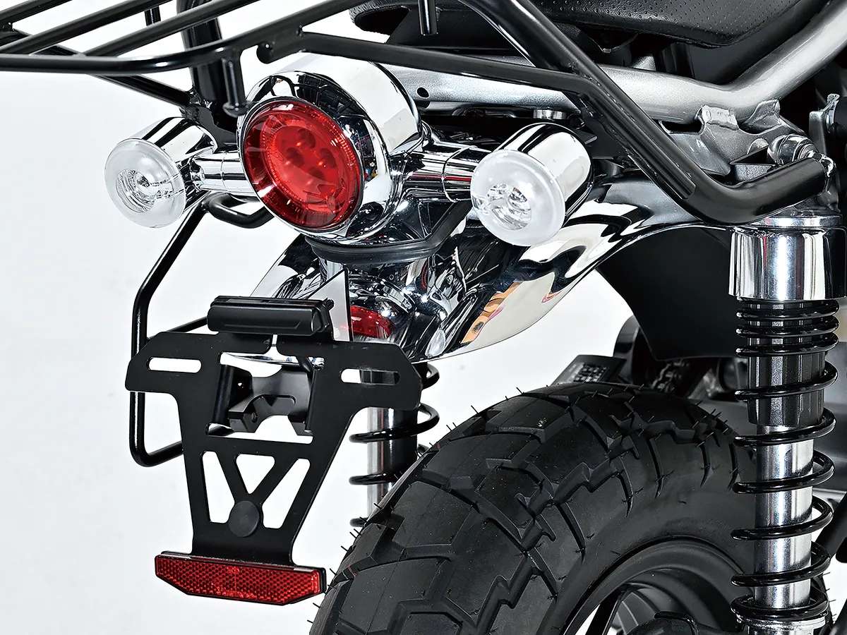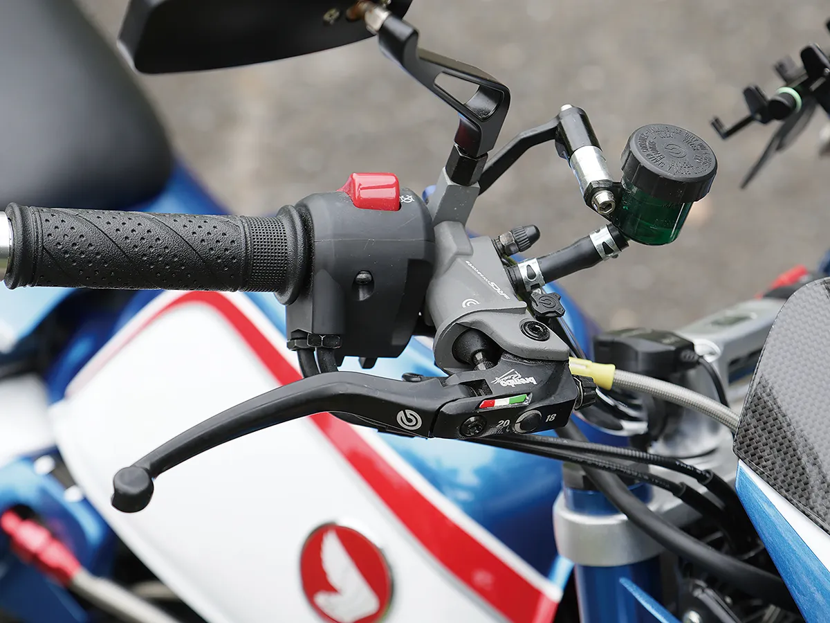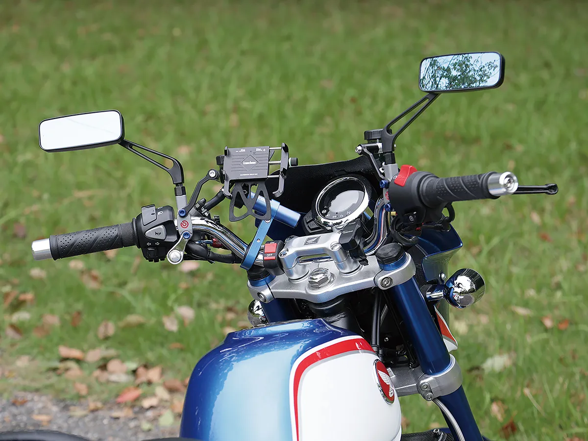 こちらのモンキーはカスタム製作コーナーでその製作工程を紹介している車両で、キタコの手によるものだ。前後フェンダーに手を入れスタイルアップを図る一方、前後にキャリアを追加することで積載性を大きくアップ。サイドバッグサポートも取り付ける。またハンドル周りはアクセサリー取り付けのバーやUSB電源、多機能ハンドルスイッチを装着することで使い勝手を大きく向上させることに成功。これらの内容は楽に真似することができるのもうれしい点だろう。