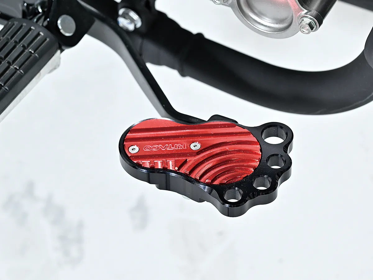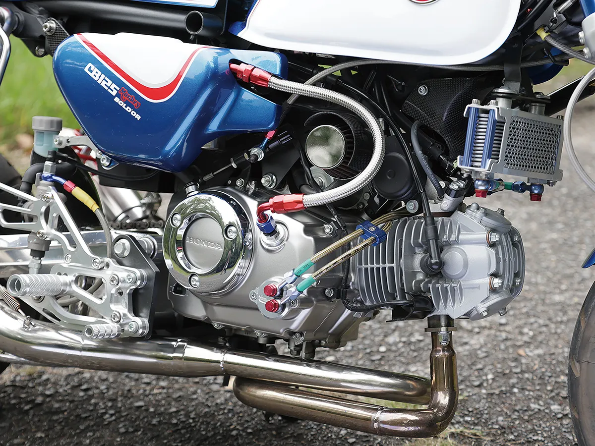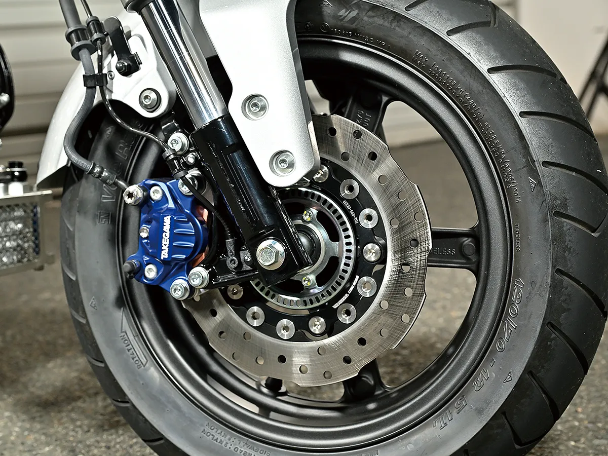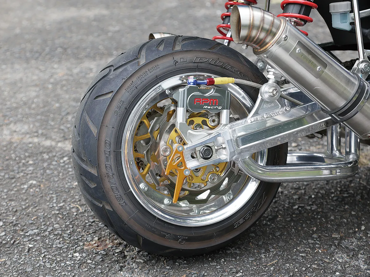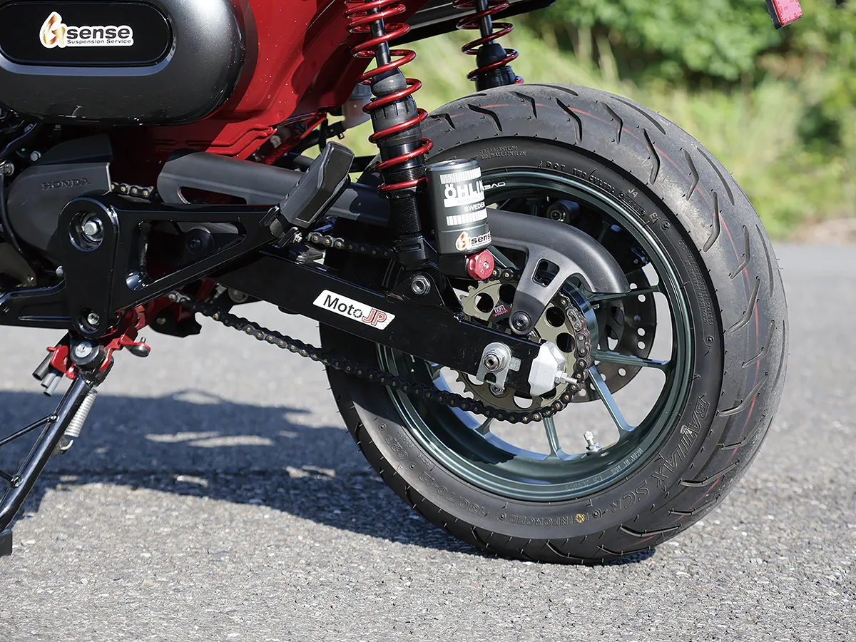 このダックスはカスタム製作コーナーで一部の製作工程を紹介しているが、それ以外も全身カスタムがされたハイレベルな車両。製作したのはスペシャルパーツ武川で、あふれるパワーを持ちながら実用性にも優れているのがポイントだ。エンジンは145ccへとボアアップされハイカム、強化クラッチ&オイルポンプを装着。一方3つのキャリアを取り付けスタイルと実用性を向上し、全方位に抜かり無いカスタムとなっている。