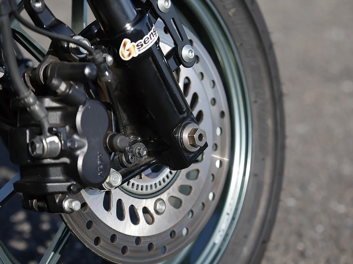 サスペンションのスペシャルショップ、G senseのスタッフ・佐藤氏の愛車であるこの車両。同店のデモ車的存在であると同時に通勤の足でもある。もちろんその「足」にはプロのノウハウが投入され、前後オーリンズの製品をセット。それもただ付けるだけでなく設定や仕様を使い方に合わせて変更することで走行性能を大きく向上させている。ホイールを始めとした細かな部分もそれに貢献しており、プロならではの視点とそれを実現する腕の確かさに感嘆させられる。