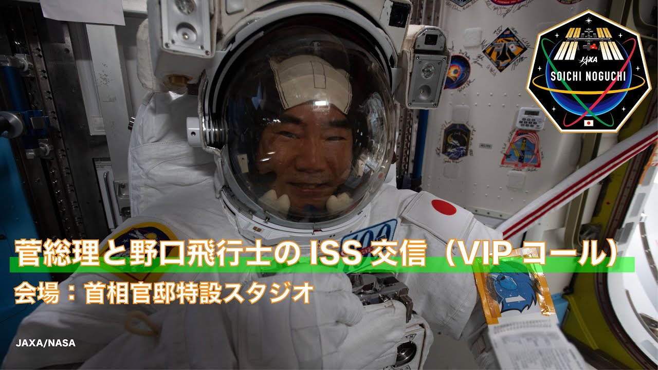 国際宇宙ステーション ( ISS )「きぼう」日本実験棟 にいる野口聡一宇宙飛行士と首相官邸特設スタジオを繋いで、リアルタイム交信を行います。