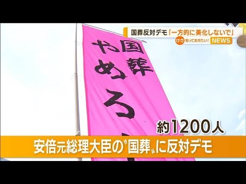来月予定されている安倍晋三元総理大臣の「国葬」に反対するデモに集まったのは、およそ1200人。憲法学者やジャーナリストらの呼び掛けで行われました。