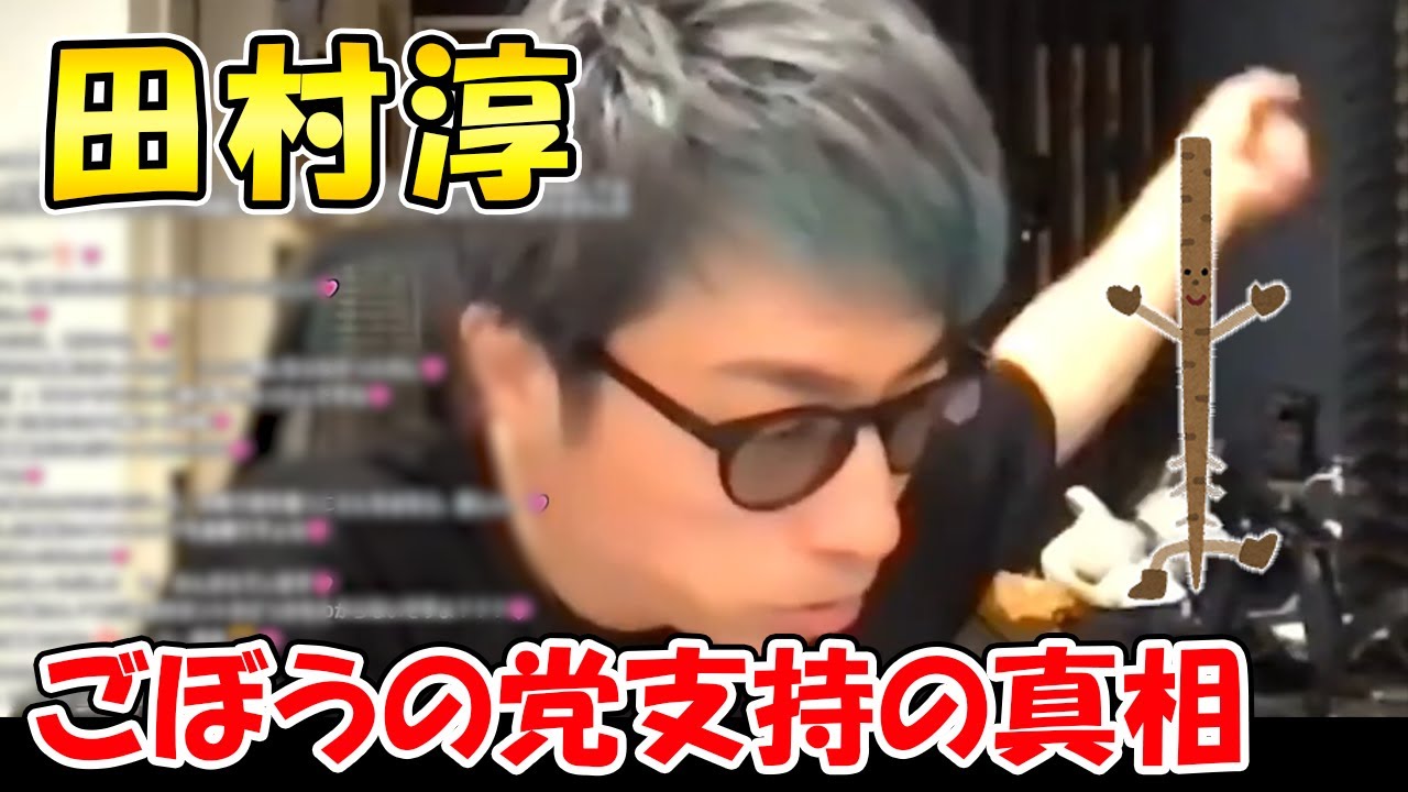 田村淳さんの2022年7月14日のYouTubeの配信から、ごぼうの党を支持しているといわれている件について話している内容について抜粋しています。