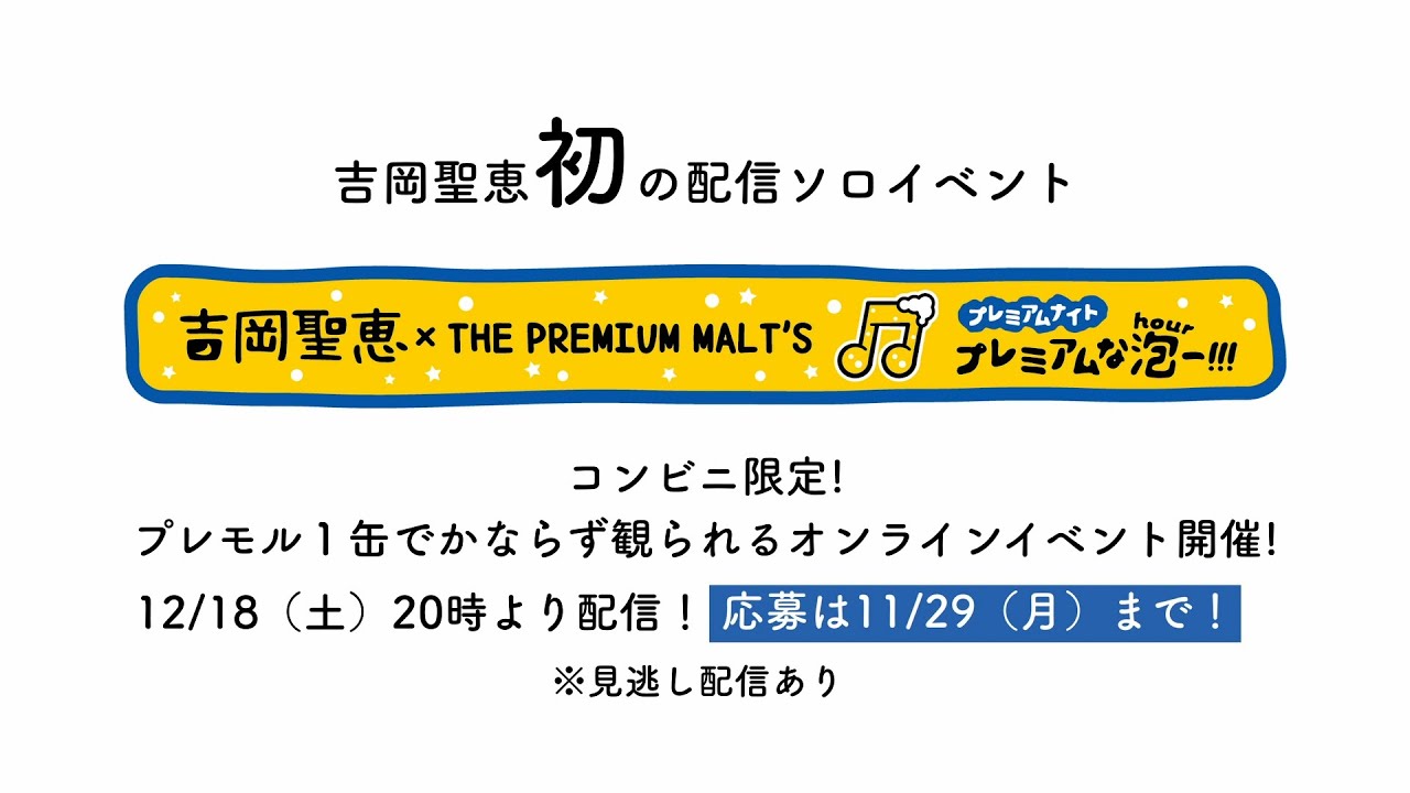 「吉岡聖恵 × THE PREMIUM MALT’S プレミアムナイト 〜プレミアムな泡(Hour)ー!!!〜」開催決定!
