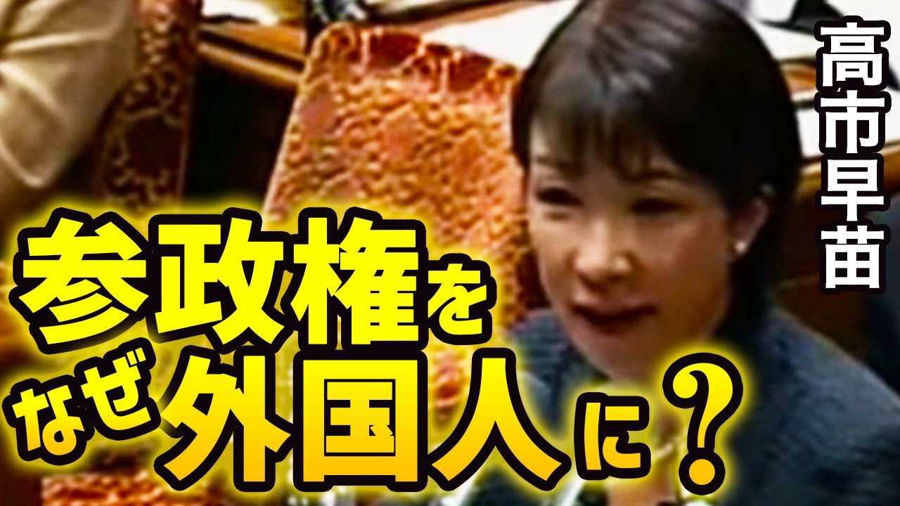 高市氏のお考えに賛同いたします。共生社会だなどとさも耳障りの良いことを言って日本を外国人に侵略させようとしているとしか思えません。日本は日本人の国です。参政権は日本人のものであるのが当然でありこの権利が外国人に侵害されることは絶対にあってはなりません。これは差別でもなんでもなく日本人の権利です。