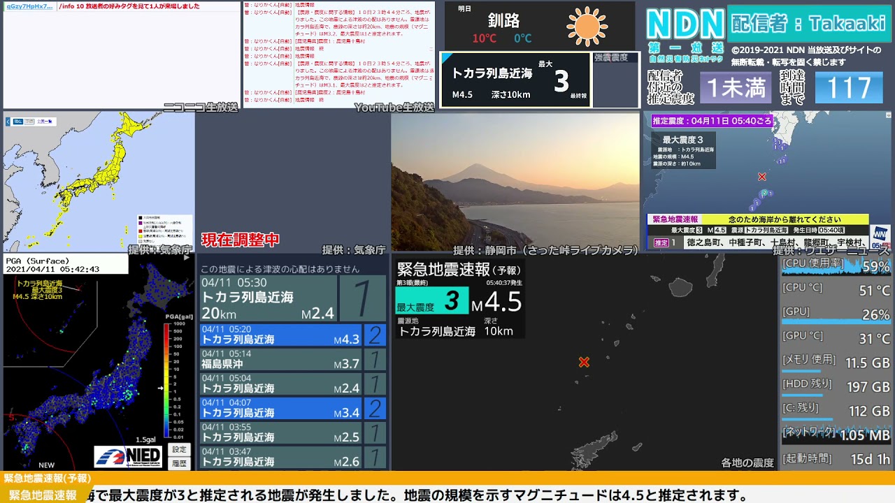 #地震 #災害 #強震モニタ #緊急地震速報 #NDN #自然災害情報ネットワーク