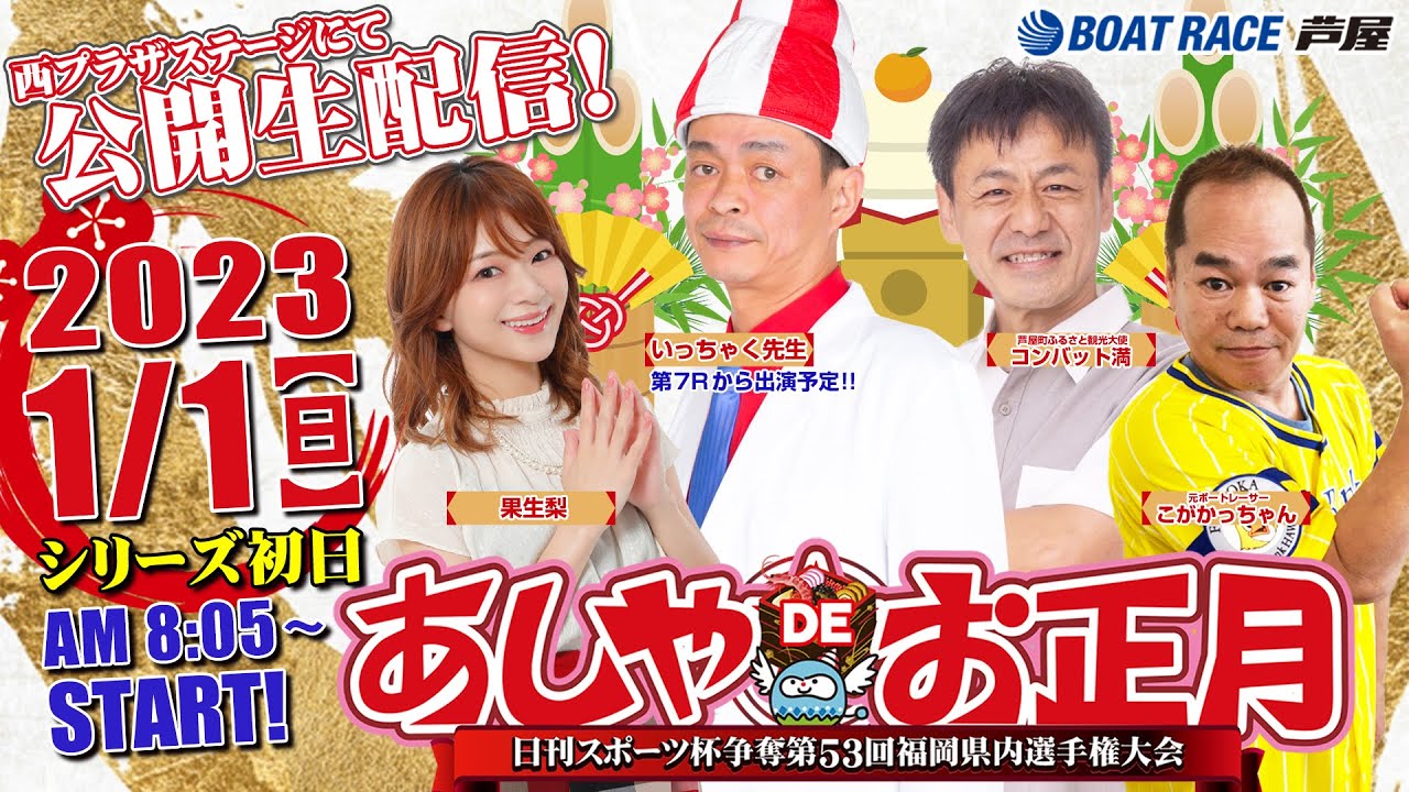 さらに1月1日~2日は、ボートレース芦屋「西プラザステージ」にて公開生配信!