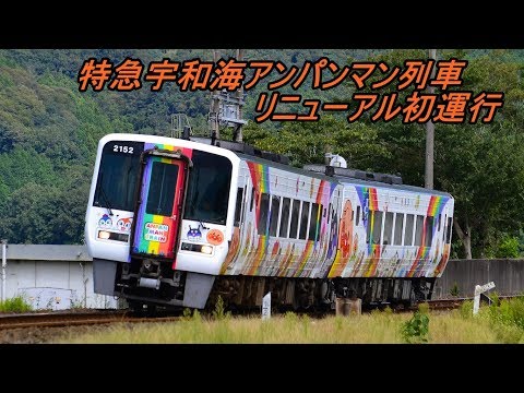 JR四国の予讃線・内子線の松山駅と宇和島駅の間を運行する特急宇和海アンパンマン列車が2019年9月28日にリニューアルされ、松山駅11時26分発宇和島駅行きの宇和海11号で初運転されました。
