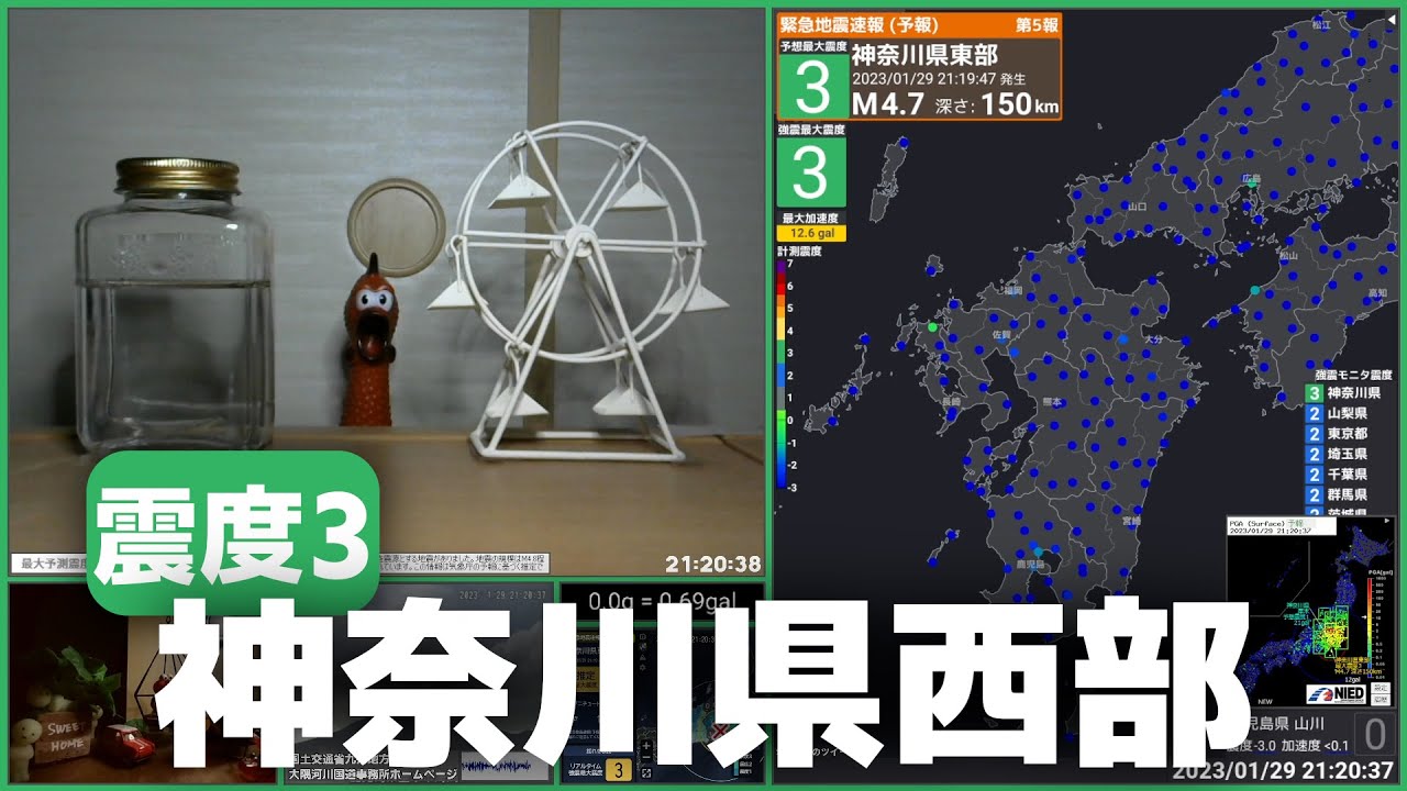 【地震情報】01/29 21:20頃 震度3 神奈川県西部(深さ約150km、M4.8) 津波の心配なし