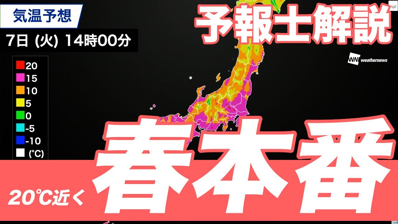 今日7日(火)もほぼ全国で気持ちの良い青空が広がります。西日本や東日本では20℃近くまで上がり、昼間は上着要らずの暖かさです。花粉の飛散や一日の寒暖差に注意してください。