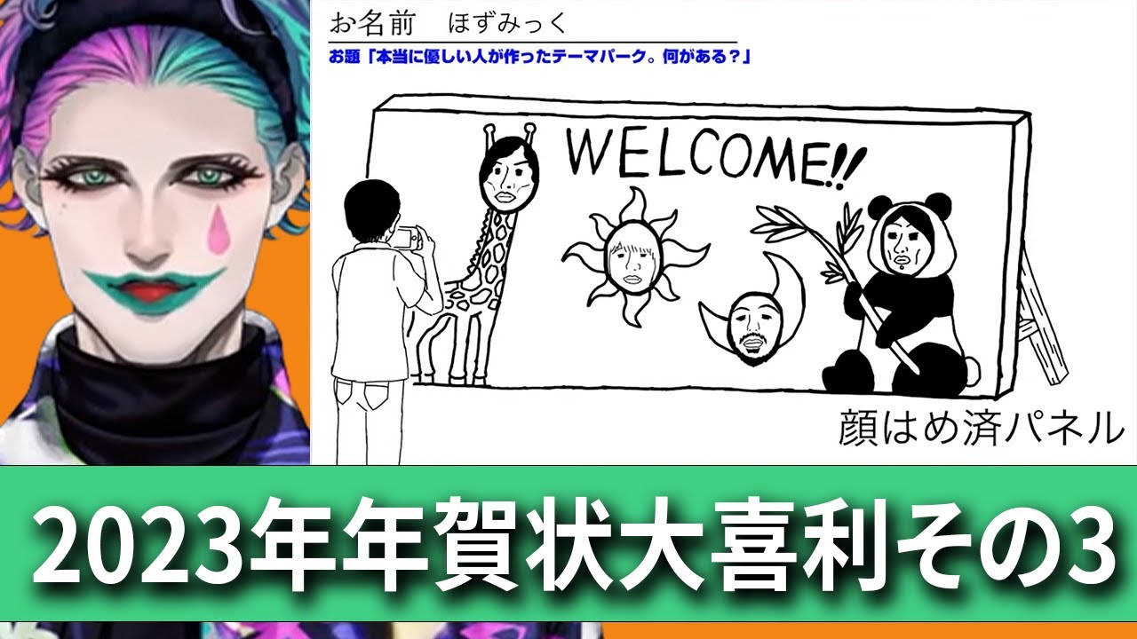※力一さんの年賀状大喜利を初めて見る人は先に元配信もしくはその1を見て下さい その1 その2 その4 準備中 元動画様 【視聴者参加型】年賀状大喜利2023 前編【にじさんじ/ジョー・力一】 配信者様 ジョー・力一 Joe Rikiichi https://www.youtube.com/channel/UChUJbHiTVeGrSkTdBzVfNCQ #力一 #にじさんじ #切り抜き nijisanjiVtuberジョー力一にじさんじにじさんじ切り抜きりきいちりきいち切り抜き切り抜き年賀状大喜利微妙な空気感 9 Comments まごん 3年 ago 「変なプロゲーマーの女」呼ばわりとぼかしてるのにた●かなってテロップ出すの2重でおもろい コーヒールンバ 3年 ago 5:04 あべ○ん先生作品の世界観にありそう 木野秋人 3年 ago 見た瞬間コナンの1話でひっくり返っちゃった。 Yoshia Kubo 3年 ago ウォーターサーバー(営業)宗教(勧誘)創業者が優しいから断れなかったって事かな? 相武航斗 3年 ago 「ピューリタン」名乗った上で宗教をやさしさと捉えてるのちょっと意味深だわ オタメシヤー 3年 ago 横回転から縦回転になる座席だけの高速観覧車みたいなのは実在します。 根岸ニラ 3年 ago クリープハイプ知らないけど笑った Hi 3年 ago 1個目は、売店に(犯人用に)ピアノ線が売ってたり、おすすめスポットが紹介されてるって意味だと思う あそび 3年 ago ハロウィンやばそう