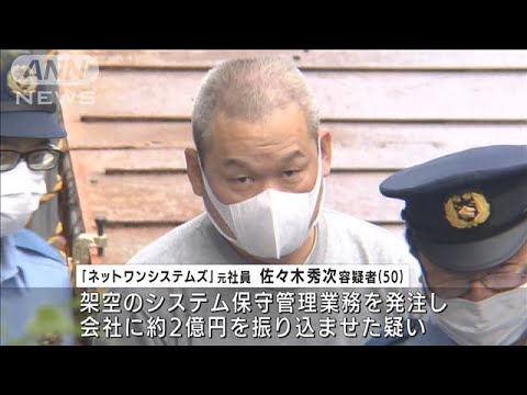 「ネットワンシステムズ」の元社員・佐々木秀次容疑者(50)はおととし、実際は官公庁から受注していないシステム保守管理業務を取引先に発注し、会社に代金約2億円を振り込ませた疑いが持たれています。