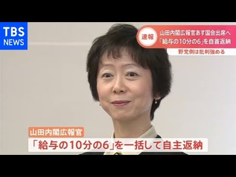 総務省の幹部らが衛星放送の関連会社に勤める菅総理の長男らから接待を受けていた問題を受け、山田内閣広報官が「給与の10分の6」を一括して自主返納することがわかりました。
