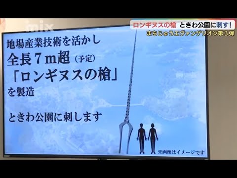 「まちじゅうエヴァンゲリオンを第3弾に移行します。まず一つ目、地元企業と強力タッグを組みましてロンギヌスの槍をときわ公園に刺します!」まちじゅうエヴァンゲリオン第3弾は、10月6日から来年1月8日まで開催されます。ときわ公園に刺す、と市長が発表した「ロンギヌスの槍」は、エヴァンゲリオンのアニメや新劇場版に登場する重要なアイテムです。製作するのは、宇部市内の企業「宇部スチール」です。