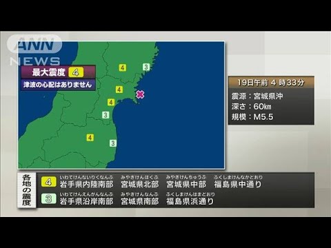 19日午前4時33分に岩手県内陸南部、宮城県北部、宮城県中部などで震度4の地震がありました。 震源地は、宮城県沖で、地震の規模(マグニチュード)は5.5と推定されます。 この地震による津波の心配はありません。 [テレ朝news] https://news.tv-asahi.co.jp テレビ朝日ニュース地震宮城宮城 地震岩手本編のみ 4 Comments 失敗学次郎 2年 ago 以前の岩手県沖(陸から遠い所)から、陸地に近い所に 震源移動したようだ。 出来る準備をしておこう。 (倒壊防止、耐震補強、耐震ブレーカー・・) ~ ライフワーク ~ 首里城火災の際、原因究明を拒否したデニー県政。 玉城デニー県イベント(首里城祭り)を契機に タコ足配線(延長コード)が燃えた、電気ショート(火災)。 違法改造の分電盤で世界初、一次側 電源ケーブルも溶断。 (詳細: ウィキペディア 首里城火災、ショート痕) フロムヴァンタレイ 2年 ago もはや日本マスコミのくだらんヤラセやな 道代 土橋 2年 ago 有り難うございました AKOTAN T 2年 ago 慣れてるからいいだろ