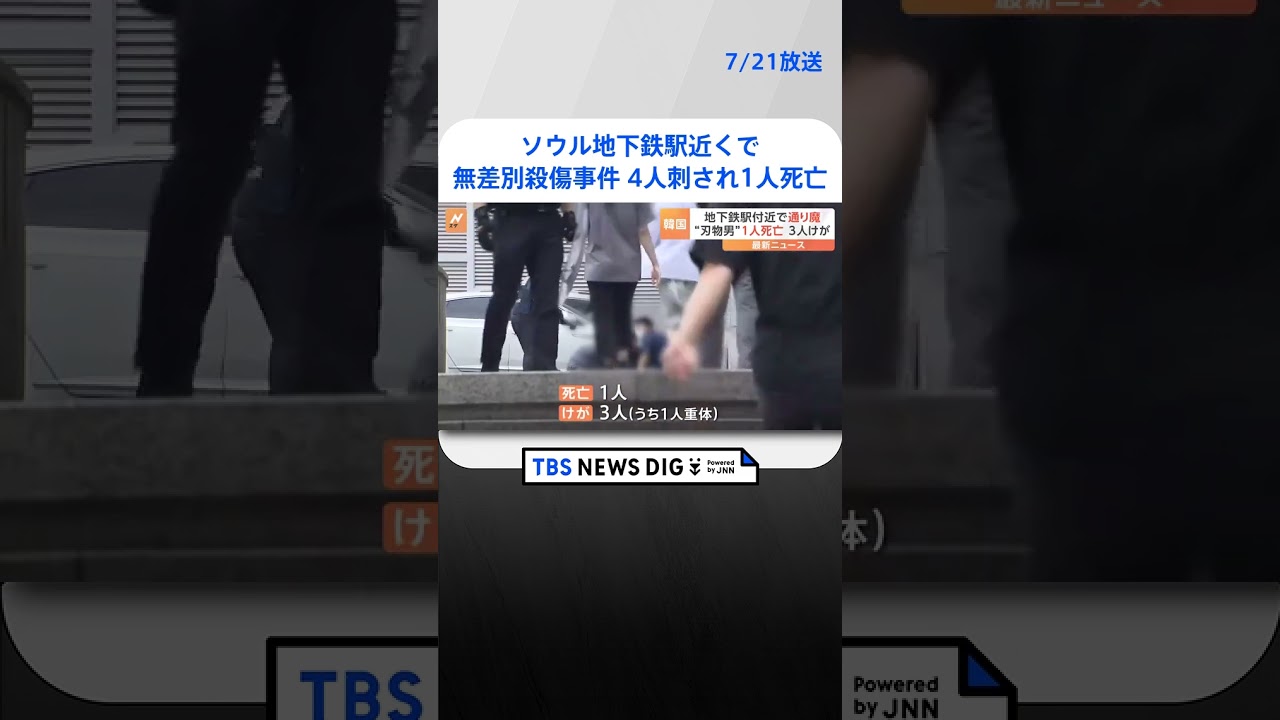 韓国・ソウルの地下鉄駅近くで男が刃物で通りかかった人を次々と襲い、1人が死亡、3人がけがをしました。