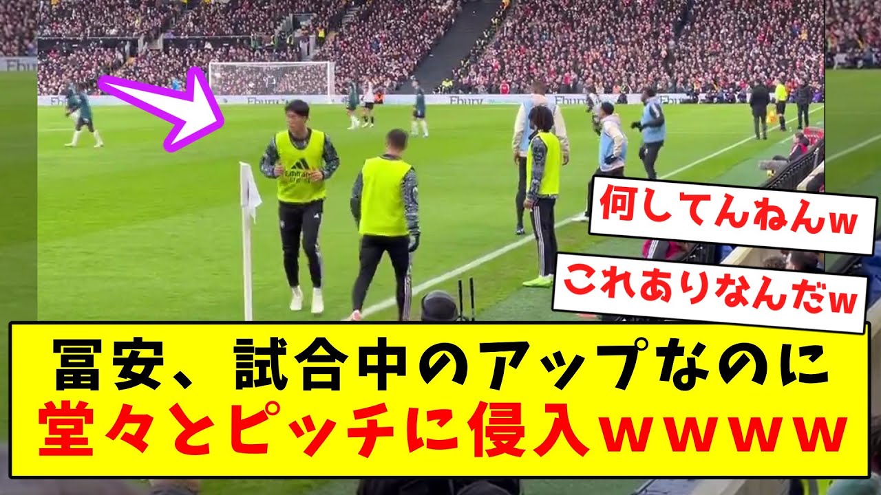 【爆笑】冨安、試合中のアップなのに堂々とピッチに侵入wwwwwwwwwwwwwwww