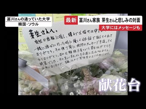 一方、冨川さんが通っていたソウル市内の大学には、献花台が設けられています。