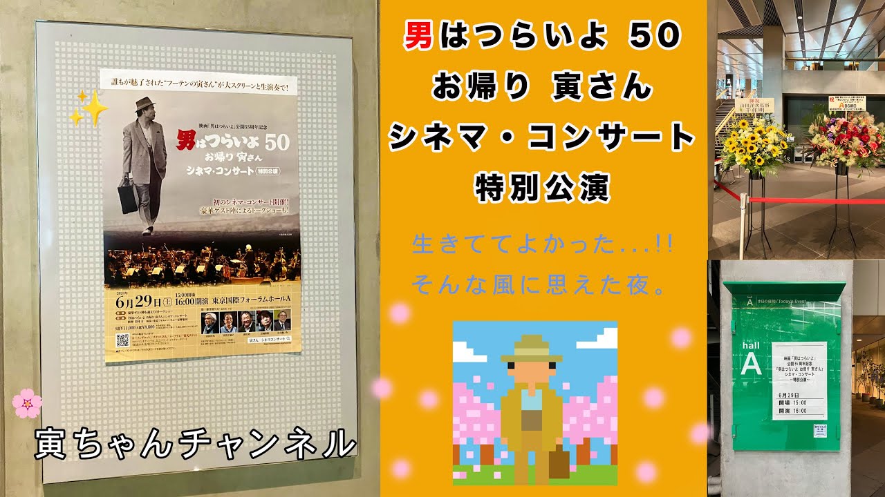 さくらさん。お久しぶりです。元西山孝四郎先生です。もう動画やめちゃったのかなと思っていた矢先のUPだったのでビックリしたと同時に、感謝です🤣さくらさんのお話を聞いているとこっちまで泣けてきました😂すごく気持ちわかります。私も会場に行っていたらさくらさんと同じように行動して、同じように思っていたと思います。なかなか周りの目なんか気にしちゃってダメなんですよね😮💨素敵なコンサートみたいなので羨ましいです。また、さくらさんの動画で男はつらいよを共有できることを楽しみにしております。寅さんは永久に不滅です!