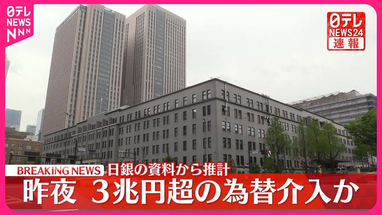 日本時間の11日夜、政府・日銀が3兆円を超える為替介入を行ったと推計されることが、日銀の資料などからわかりました。