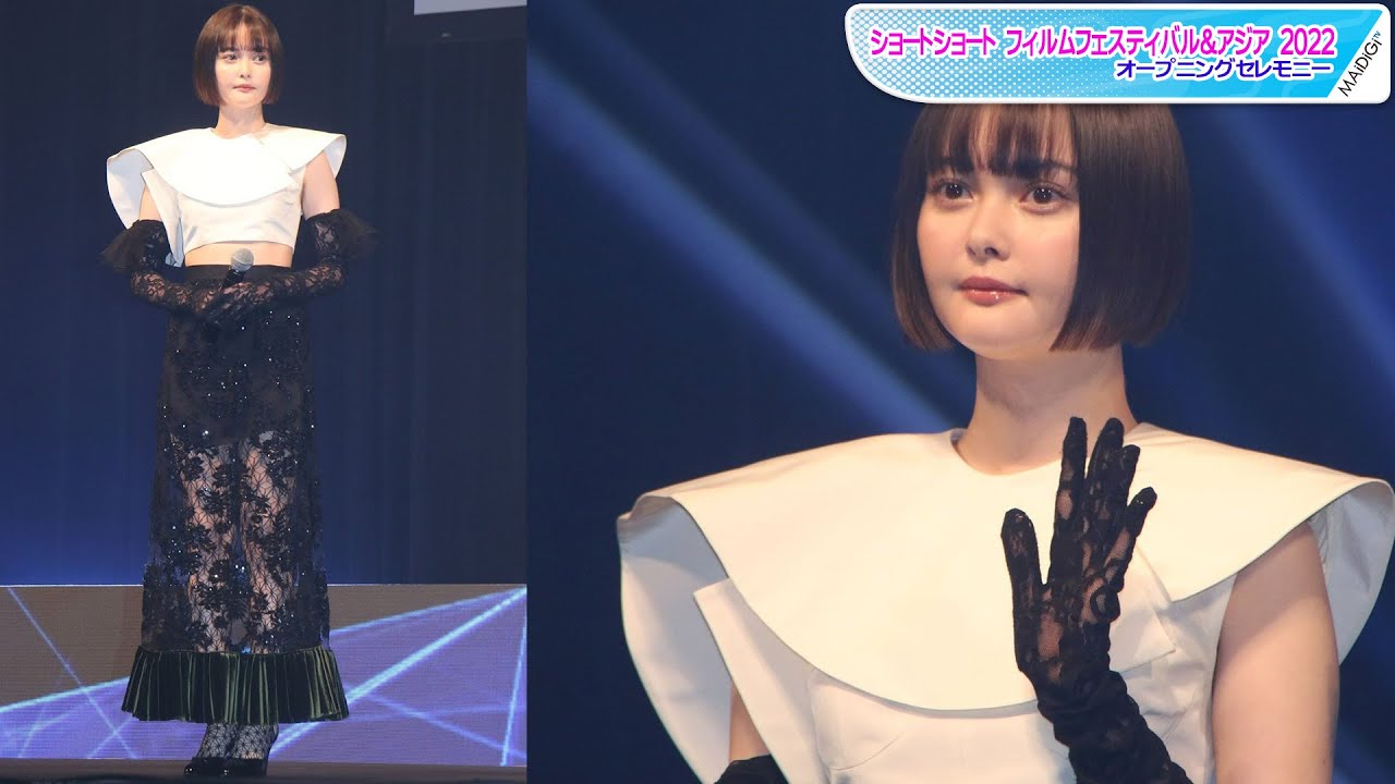 女優の玉城ティナさんがこのほど、東京・渋谷の「LINE CUBE SHIBUYA」で開催されたアジア最大級の国際短編映画祭「ショートショートフィルムフェスティバル&アジア(SSFF&ASIA)2022」のオープニングセレモニーに出席した。アシンメトリーなデザインの大きな襟が個性的な、ミニ丈のトップスを着こなしたおなか見せコーデ。ミニボトムに透け感のあるレーススカートを合わせたようなファッションで品良く美脚を見せていた。レースのグローブを着けたエレガントな装いだった。