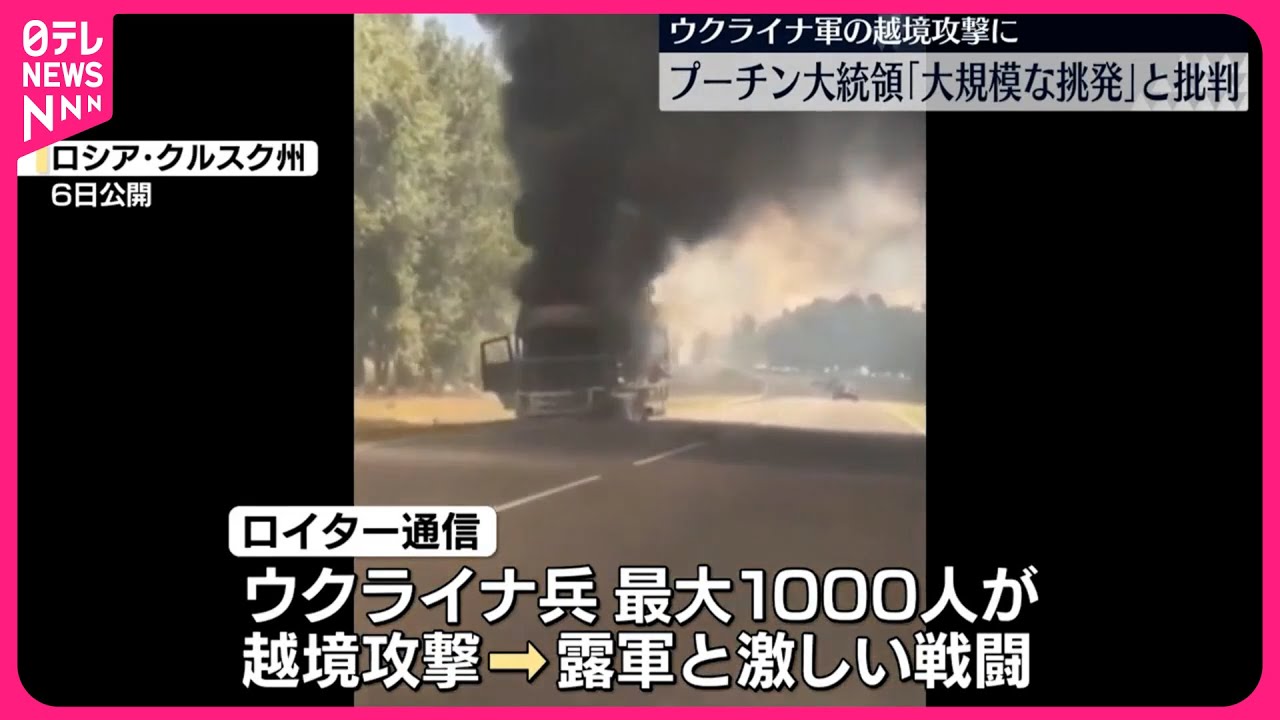 ロシアのプーチン大統領は7日、ウクライナと国境を接する西部クルスク州にウクライナ軍が越境攻撃を仕掛けたとして「大規模な挑発」だと批判しました。