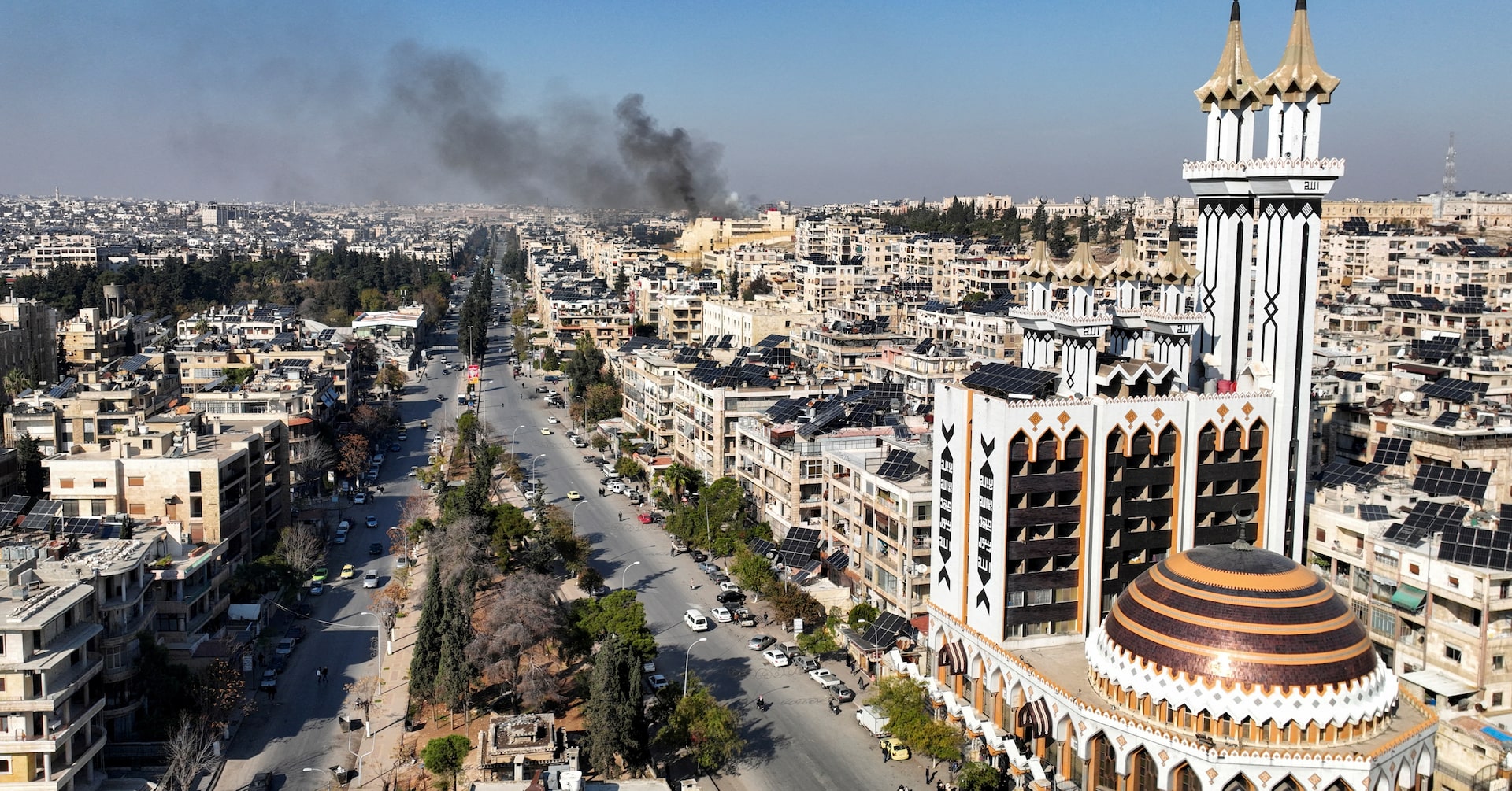 シリアの首都ダマスカス近郊で12月3日、イスラエルが1台の自動車へ空爆を行い、レバノンの親イラン武装組織ヒズボラでシリア軍との連絡を担当するサルマン・ジュマア幹部が死亡した。写真は同日、アレッポでドローン撮影(2024年 ロイター/Mahmoud Hasano)