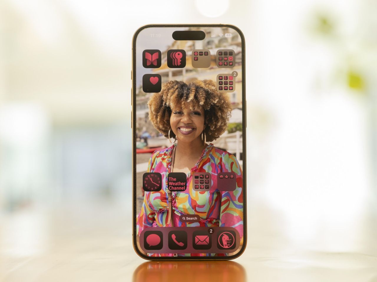 すべてのアプリを画面の下部に配置したり、画面を囲むように配置したり、その他にもさまざまなパターンで配置できる。筆者は右利きなので、スマートフォンを落とす心配をすることなく簡単にタップできるよう、ほとんどのアプリを画面の右側に配置している。壁紙が大切な人やペットの写真である場合、その写真がよく見えるようにアイコンを配置することも簡単だ。