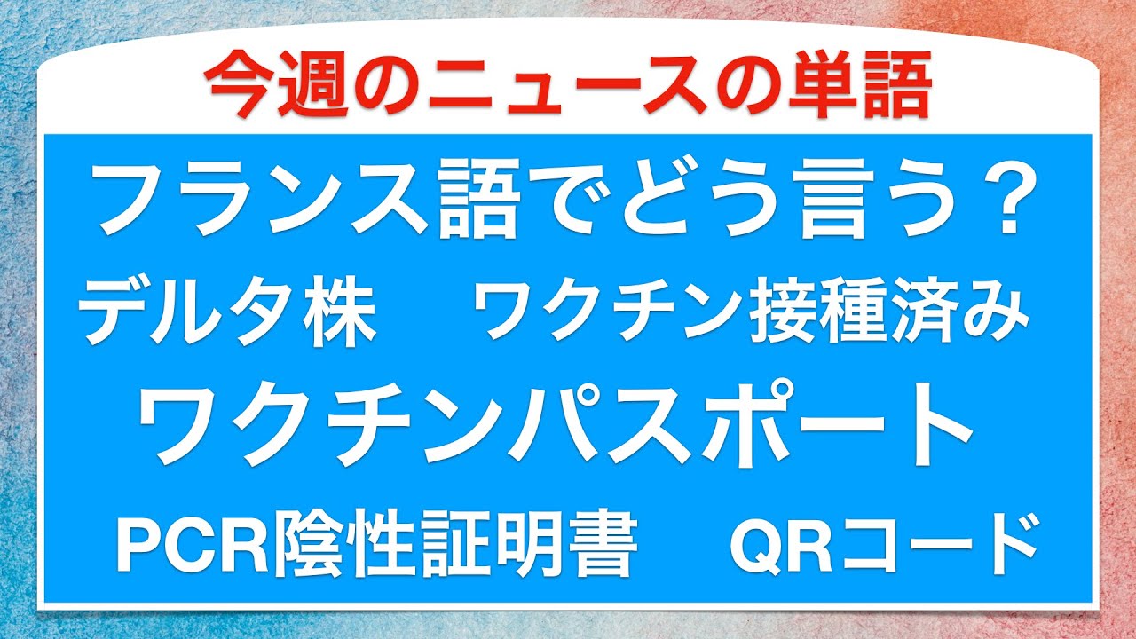 「ワクチンパスポート」や「デルタ株」などの今週の主なニュースの単語をフランス語で音節を区切って読みます。 直訳ではないこともあります。 辞書の訳とは違うこともあって、実際のニュースで使われてる単語を紹介してます。 ぜひ会話で使ってみてください。 #フランス語 #フランスニュース #ワクチンパスポート #フランス語会話 Cyril先生JapanJapan Breaking NewsJapan NewsJapan Todayシリル 先生ニュースフランスフランス語レッスンワクチンパスポート会話勉強復習朗読無料発音読み方 WACOCA: People, Life, Style.