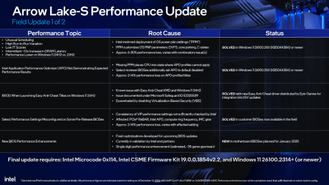 そして5番目は、Intelが最近開発したパフォーマンス最適化機能の実装だ。エンドユーザー向けのBIOSは2025年1月前半を予定しており、BIOS更新によりマイクロコードバージョン0x114、CSMEファームウェアキット19.0.0.1854v2.2(またはそれ以降)で提供される。