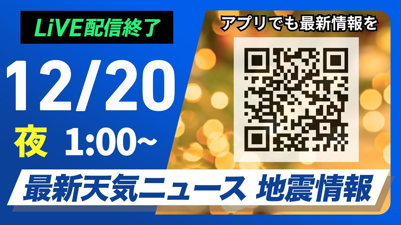 【ライブ】最新天気ニュース・地震情報 2024年12月20日(金)/<ウェザーニュースLiVE>