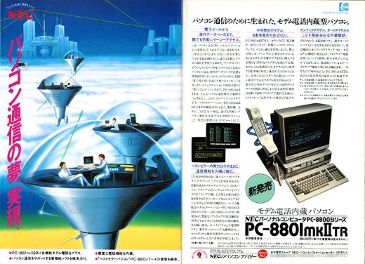 PC-8801mkIISRの広告は、“音と映像”という部分に焦点を当てたキャッチコピー「サウンド オブ サイエンス。」が使われていました。