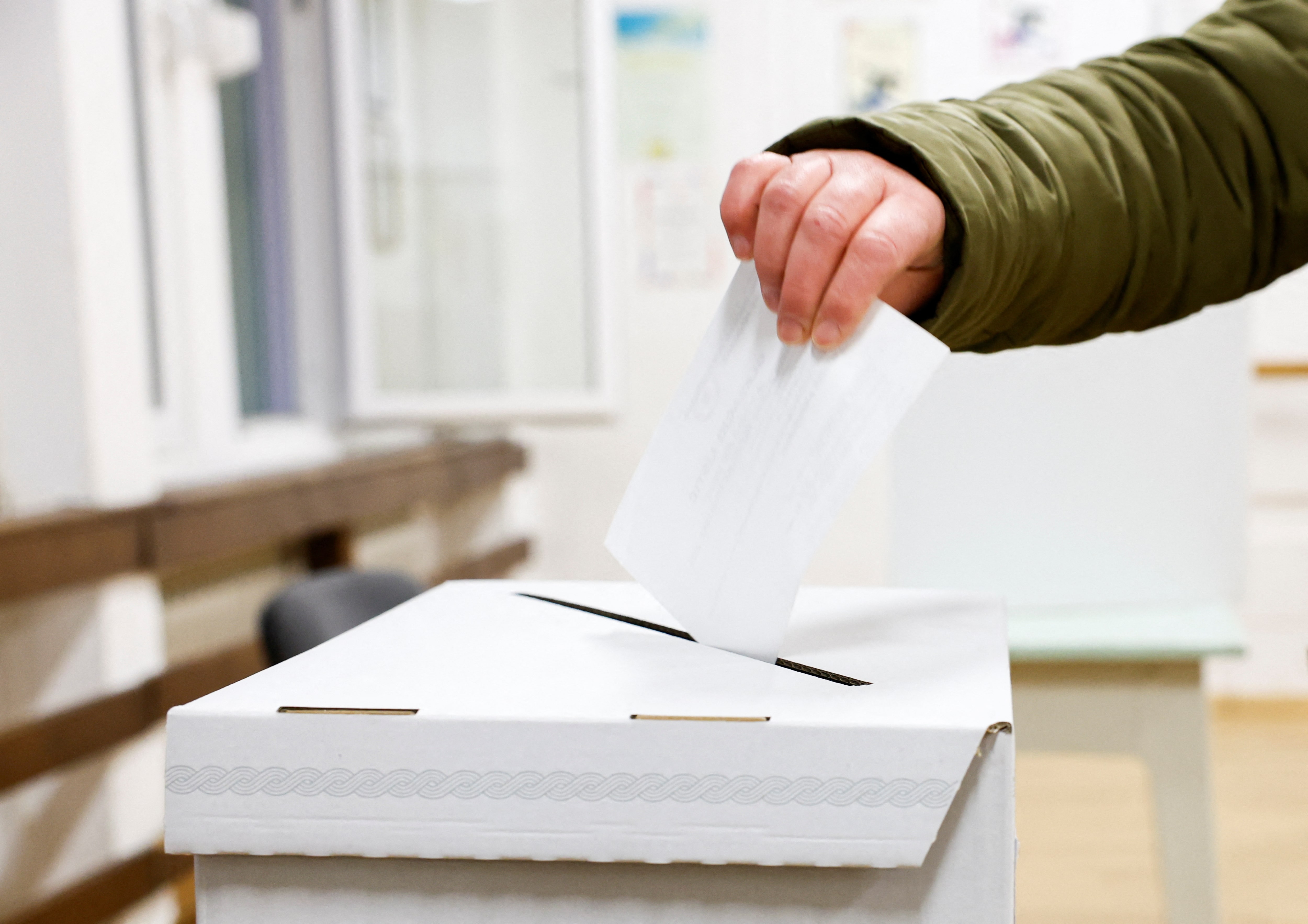 クロアチアで12日、大統領選の決選投票が行われ、現職のミラノビッチ大統領がプリモラツ元教育・科学相を抑え、再選を果たした。写真はザグレブの投票所で撮影(2025年 ロイター/Borut Zivulovic)