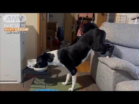 ドッグトレーナーの鹿野正顕さんによりますと、「ごはんまでの距離が近すぎて、ソファとの間に体が入らないので、後ろ脚を乗せて食べている。ピノちゃん自身はごはんを食べることに集中しているので、この体勢を気にしていない」と、いうことです。